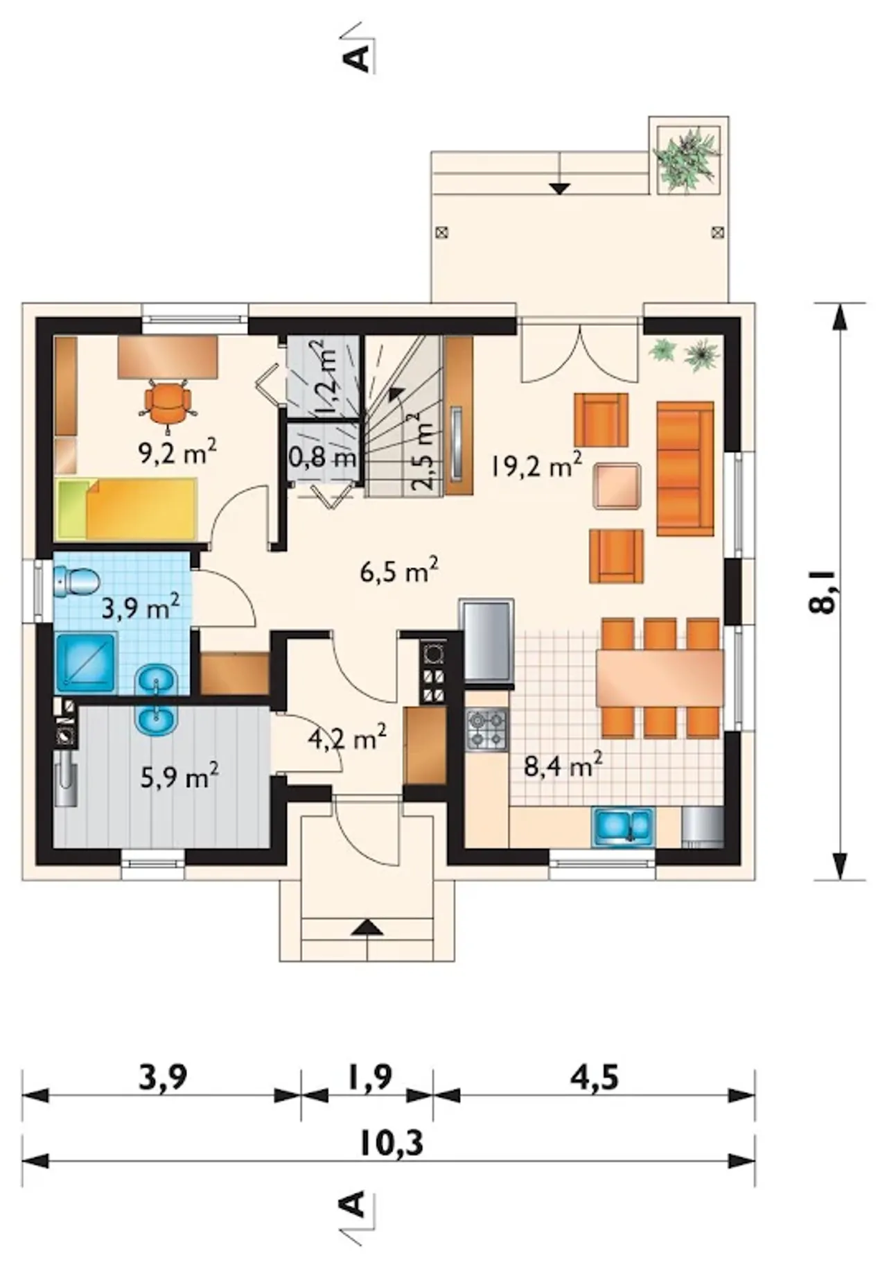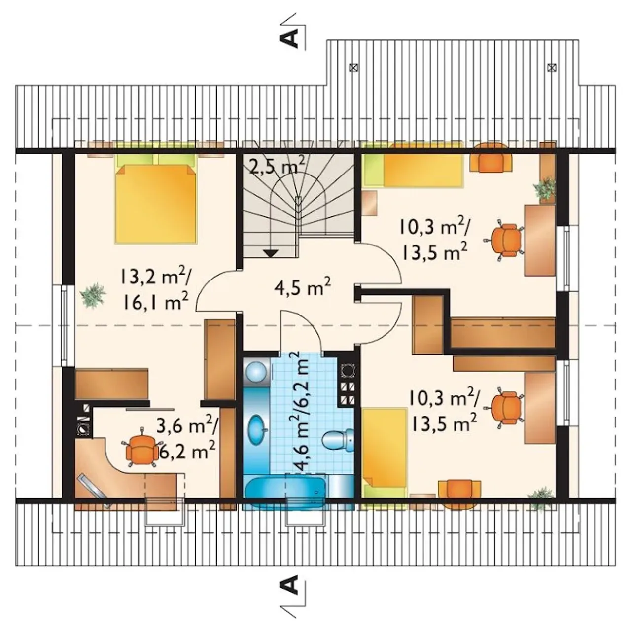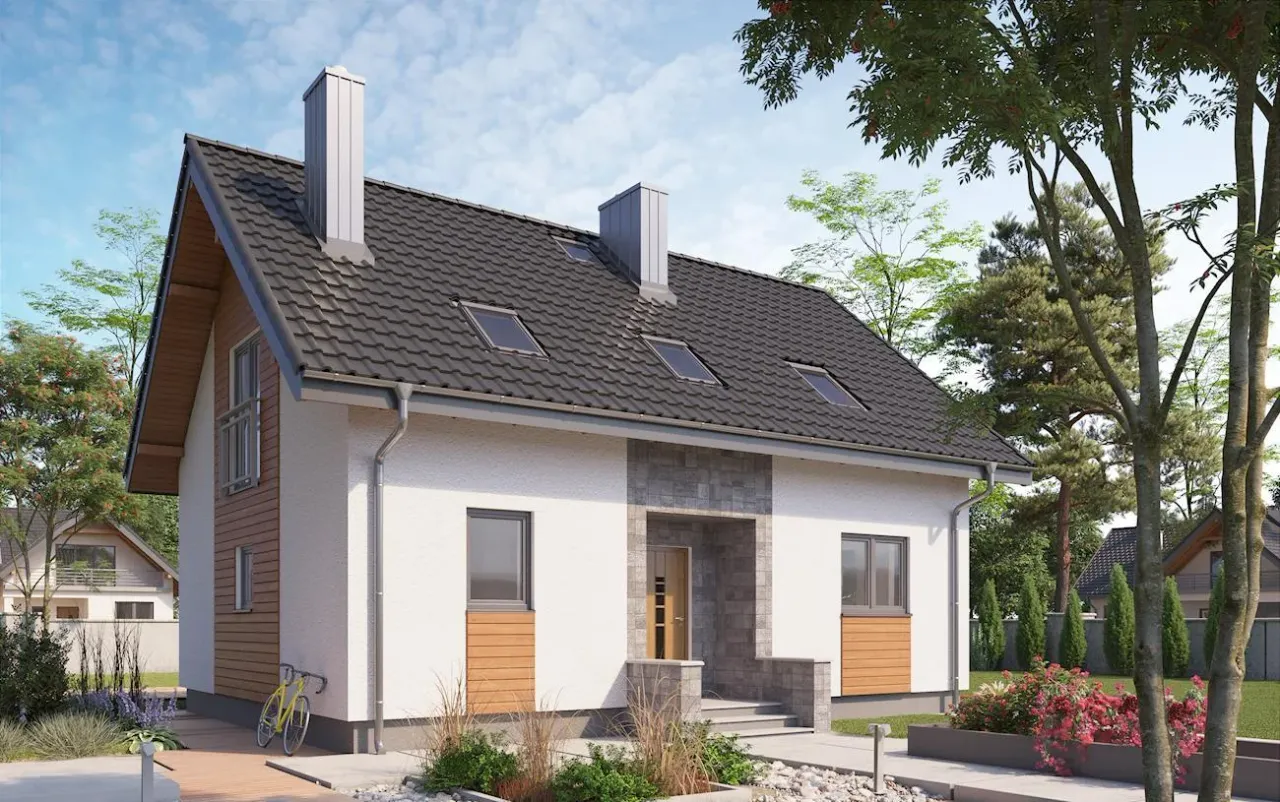- elewacje - pokazują dokładny wygląd domu od frontu, z tyłu i z boków