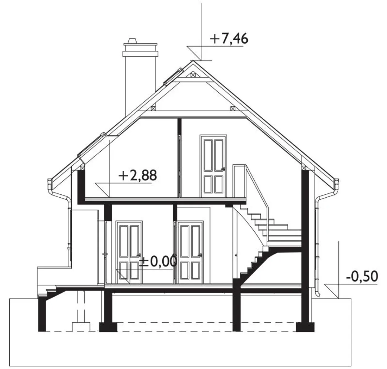 - przekroje - pokazują wszystkie elementy budynku po przecięciu go wzdłuż lub w poprzek od dachu do fundamentów tj. warstwy podłogi, stropów i dachu