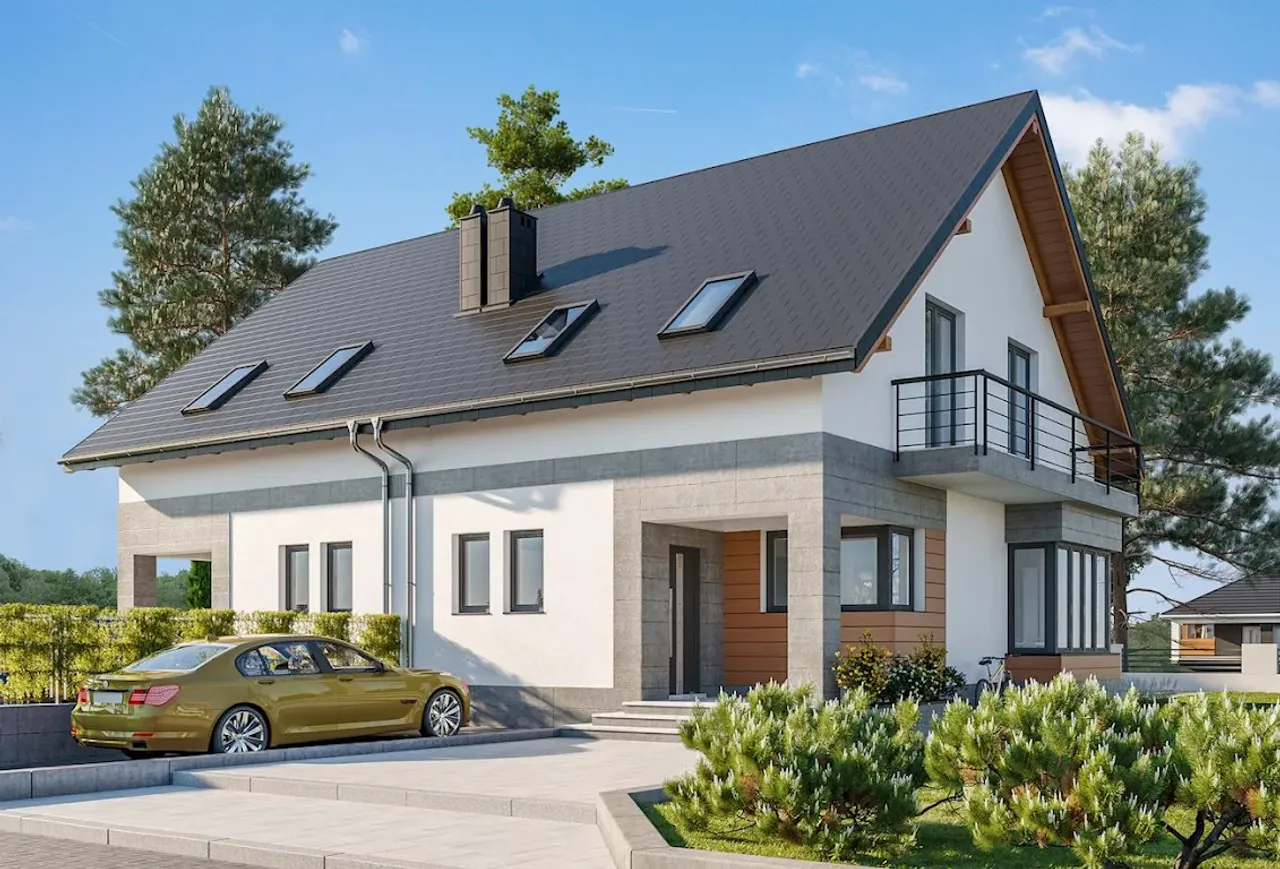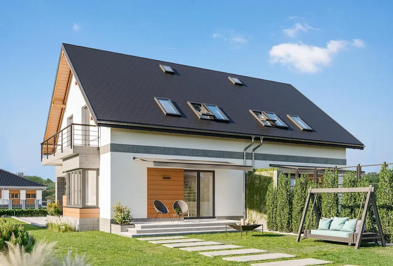 - elewacje - pokazują dokładny wygląd domu od frontu, z tyłu i z boków