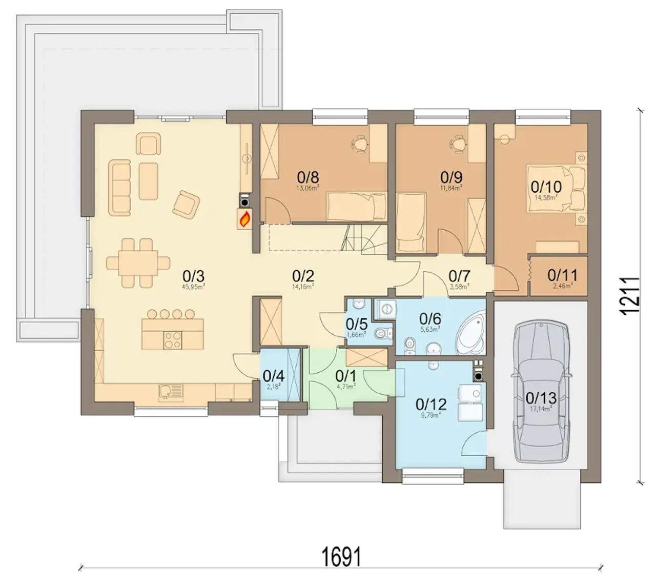 Szerokość budynku 16.91 m |