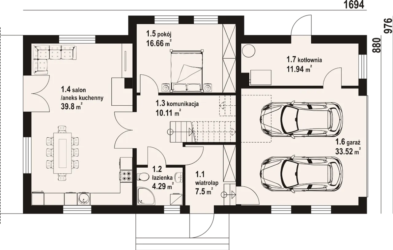 4. Salon z aneksem kuchennym | 39,80 m² |