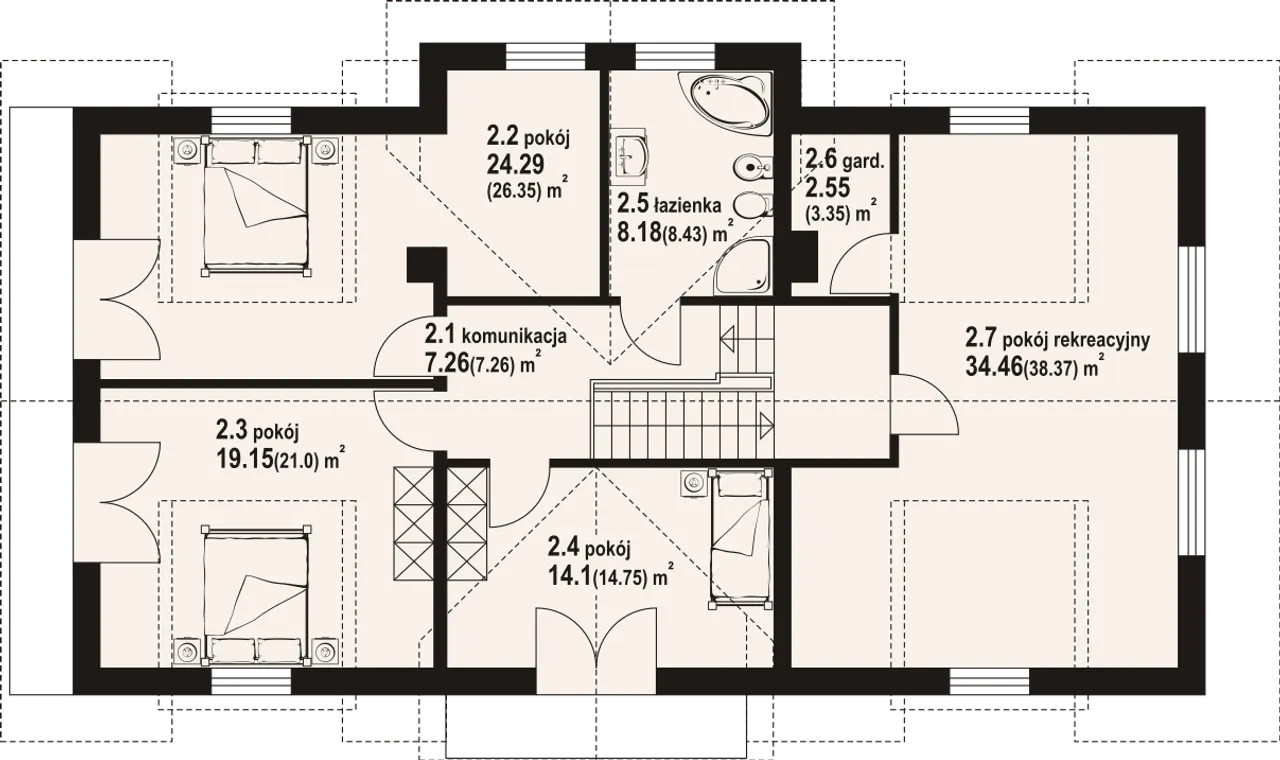 7. Pokój rekreacyjny | 34,46 (38,37) m² |
