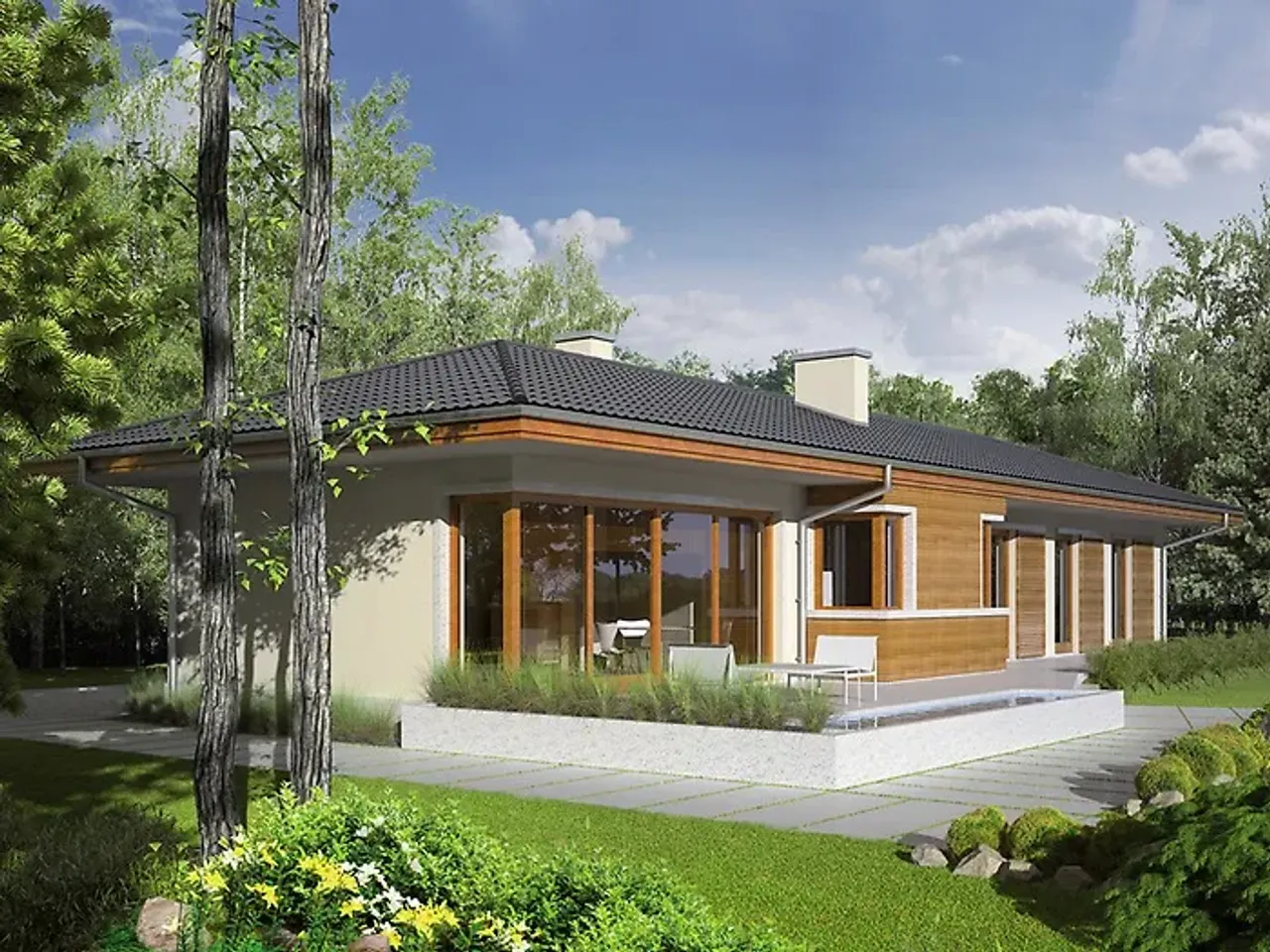 Kupując projekt w technologii murowanej powinieneś budować dom murowany. Zupełna zmiana technologii na szkieletową wymaga przeprojektowania całego budynku ( zmieniają się obciążenia, fundamenty, konstrukcja dachu). Wydamy zgodę na takie przeprojektowanie jednak wiążę się to z dużymi kosztami. Istnieją firmy wykonawcze, które podejmują się zmiany technologii budowy bezpłatnie przy skorzystaniu z ich usług wykonawczych. Zdarza się, że pracownia architektoniczna przygotowuje warianty konkretnego projektu przewidując także inne technologie. Prosimy o sprawdzenie czy istnieje poszukiwana wersja projektu, w zakładce - warianty projektu.
