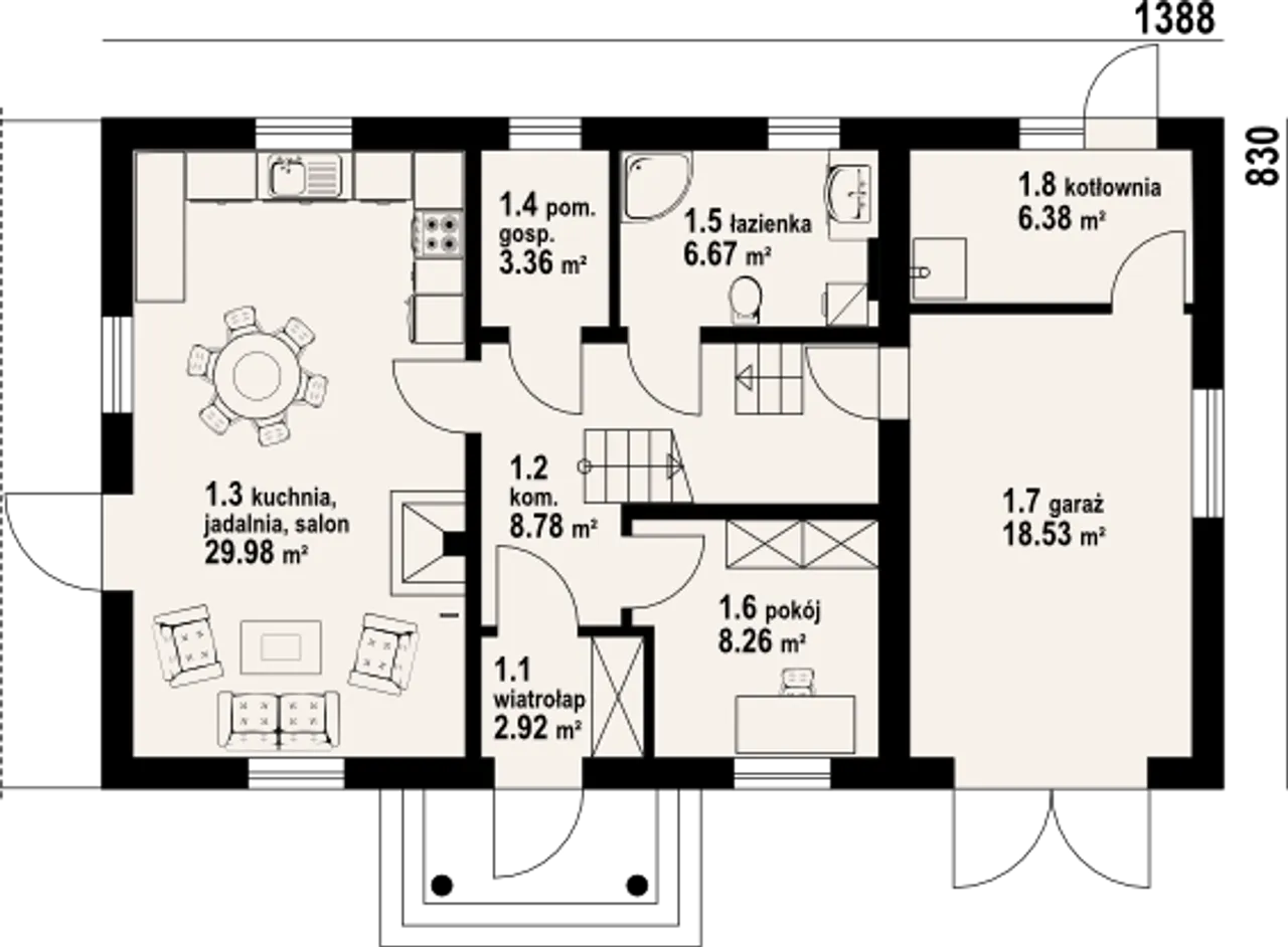 3. Kuchnia + jadalnia + salon | 29,98 m² |