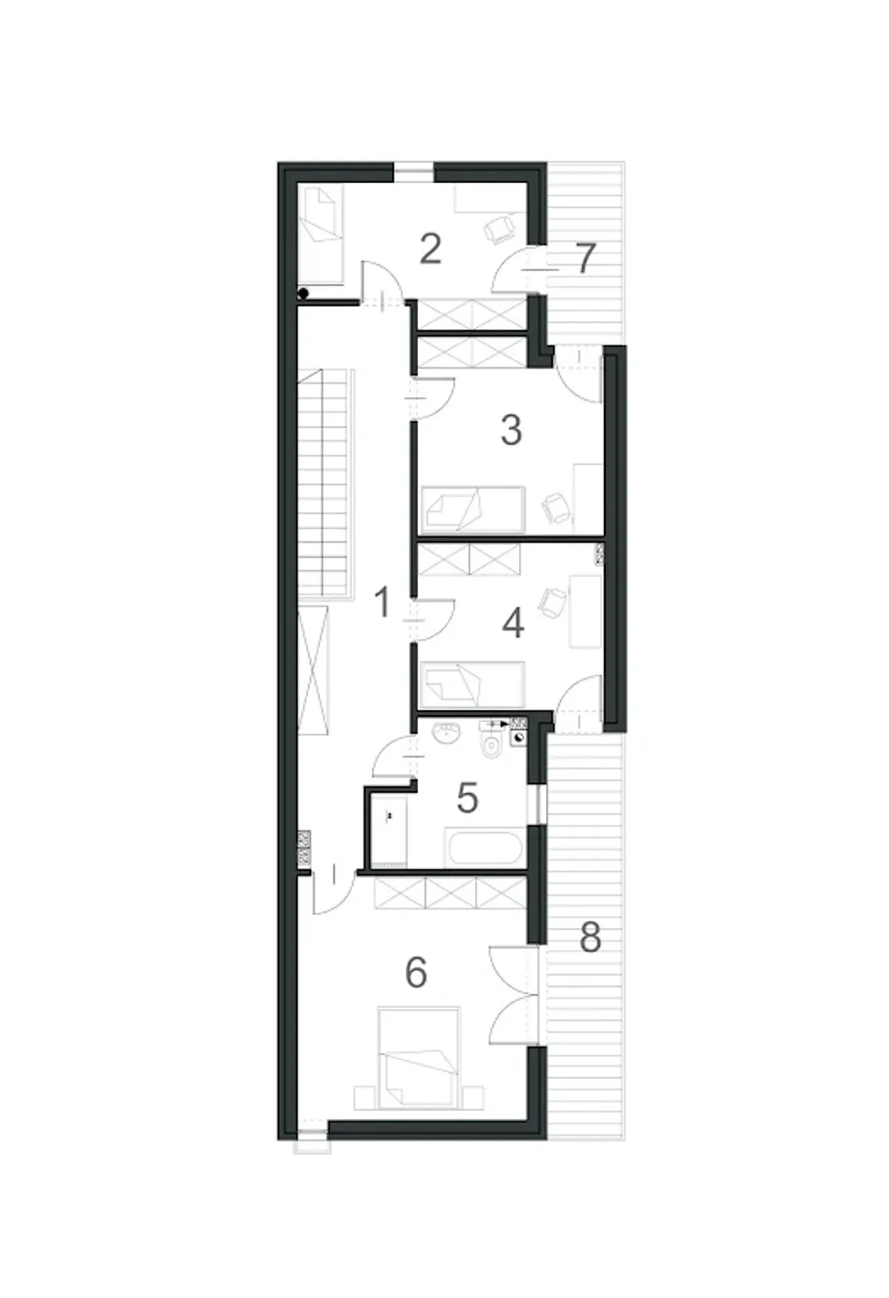 - Rozmieszczenie ścian działowych.