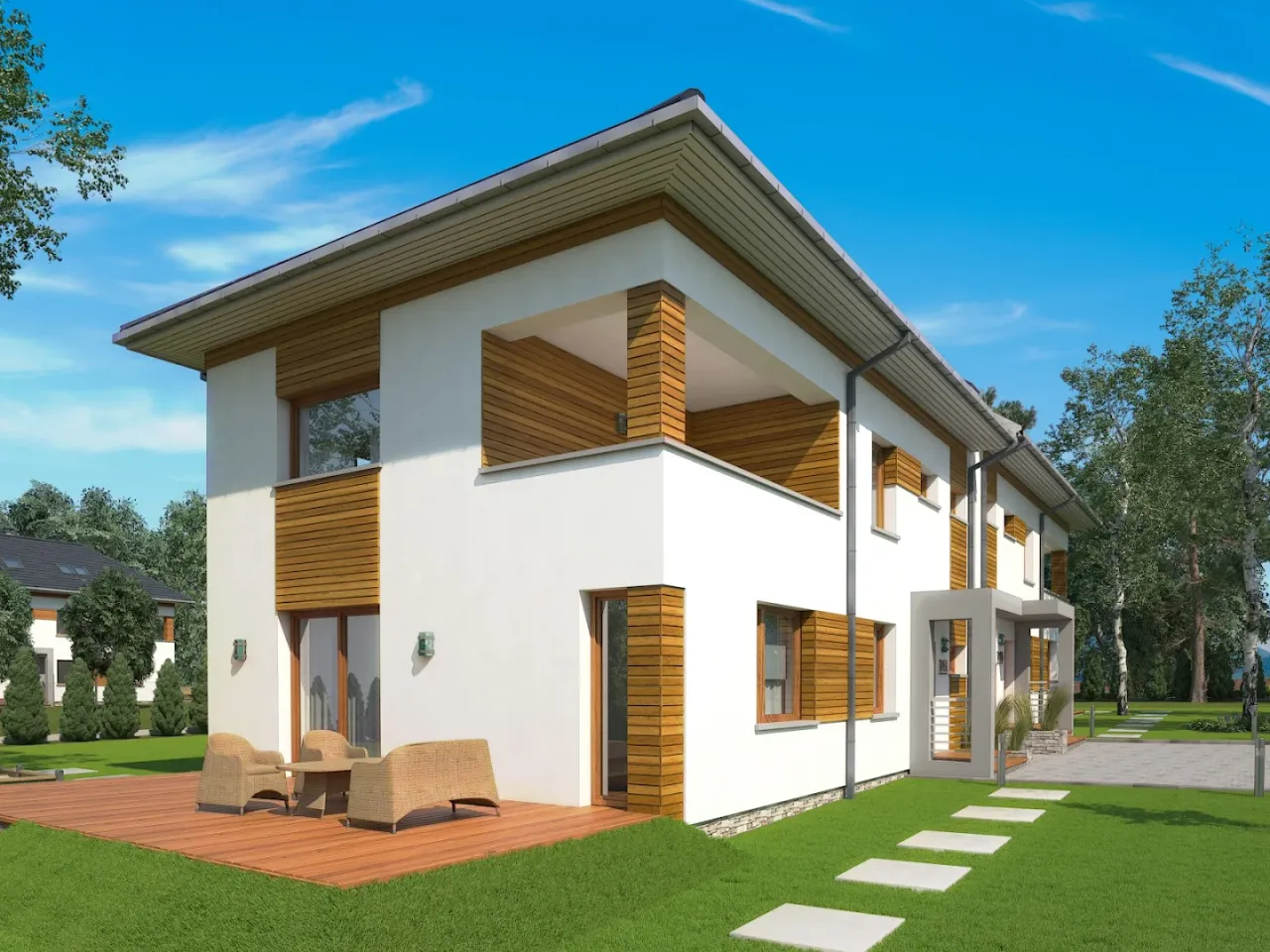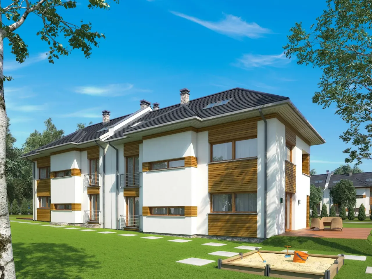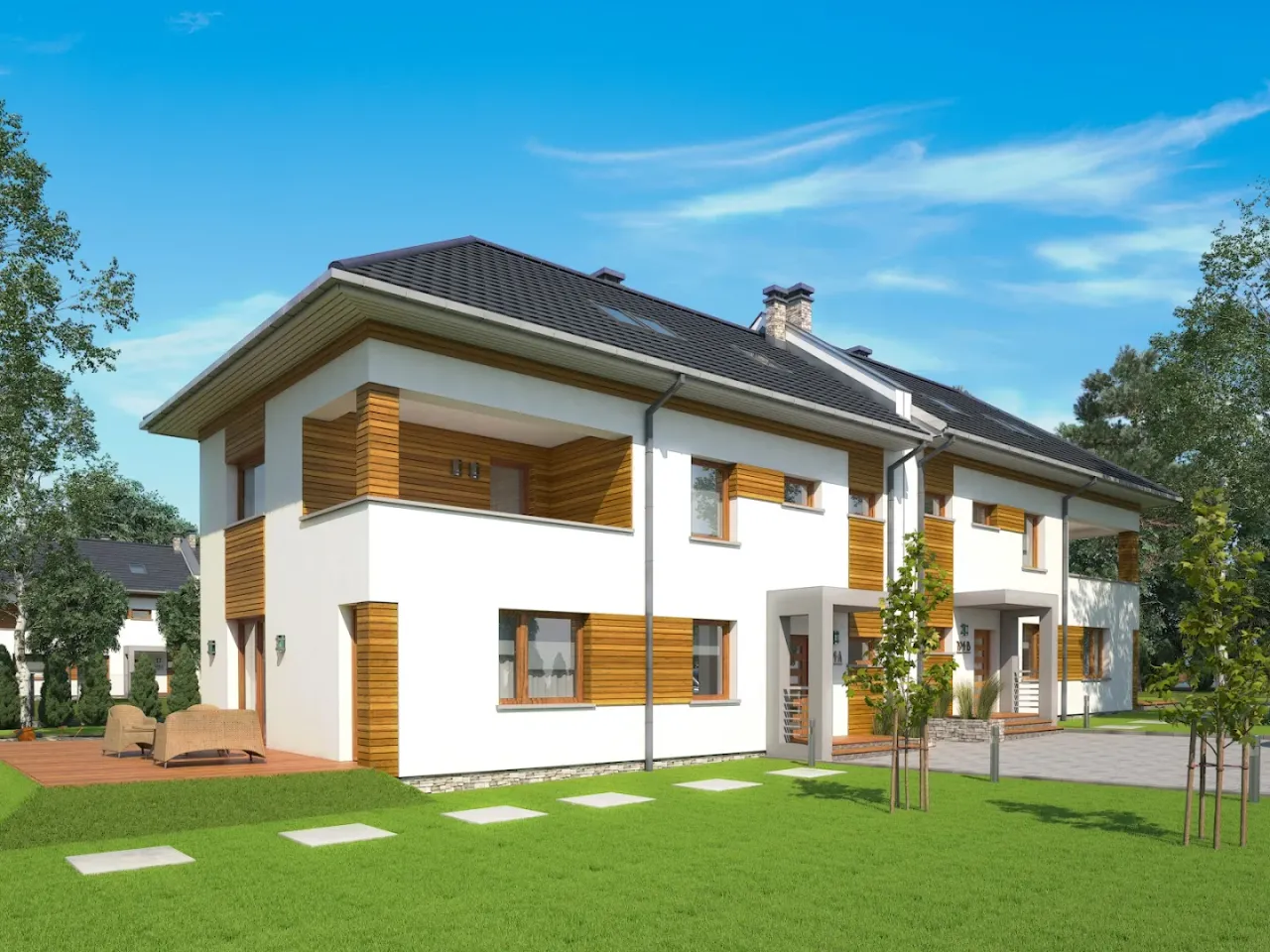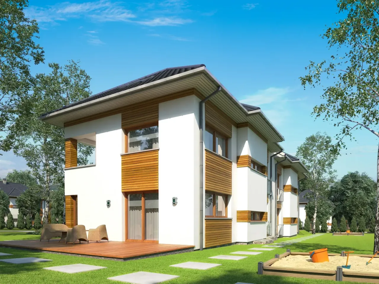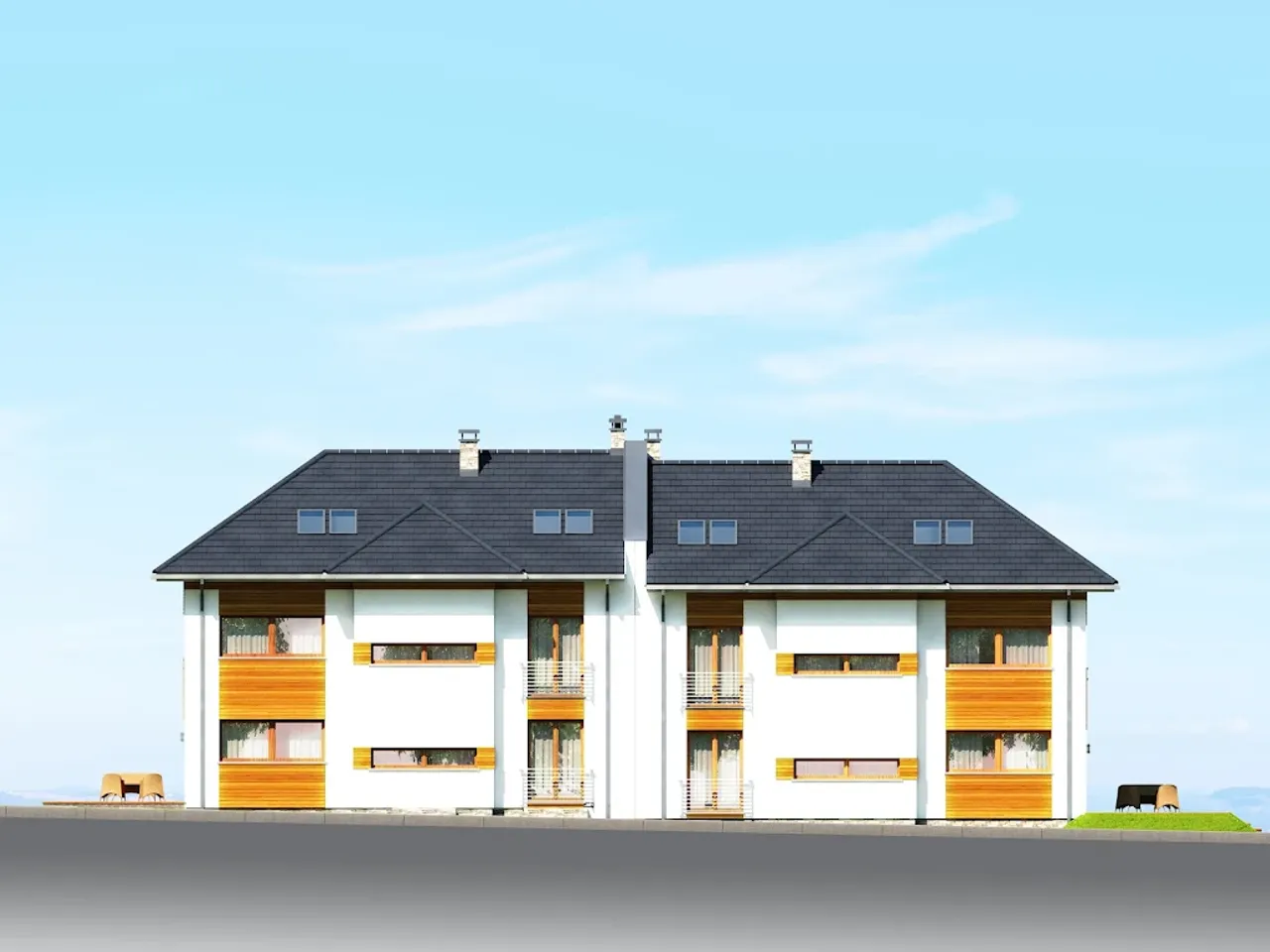 Projekt domu Bliźniak 4 idealnie wpisuje się w wizję współczesnego, ale przytulnego domu, oczekiwanego przez rodziny ceniące sobie zarówno funkcjonalność, jak i estetykę. Architektura tego projektu z pewnością zachwyci miłośników nowoczesnych, lecz nieprzesadzonych form. Zaskakujące połączenie prostoty z elegancją sprawia, że budynek doskonale komponuje się zarówno w urbanistycznym, jak i bardziej naturalnym otoczeniu. Idealny wybór dla tych, którzy szukają domu z charakterem, który będzie równocześnie miejscem inspirującym do życia oraz bezpieczną przystanią dla każdego członka rodziny.