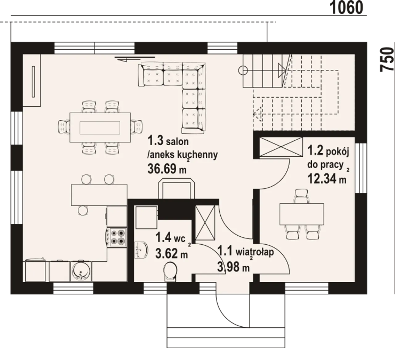 - opisu architektonicznego zawierającego m.in. opis przyjętych rozwiązań, zestawienia powierzchni (użytkowej, zabudowy, netto), kubatury oraz powierzchni poszczególnych pomieszczeń
