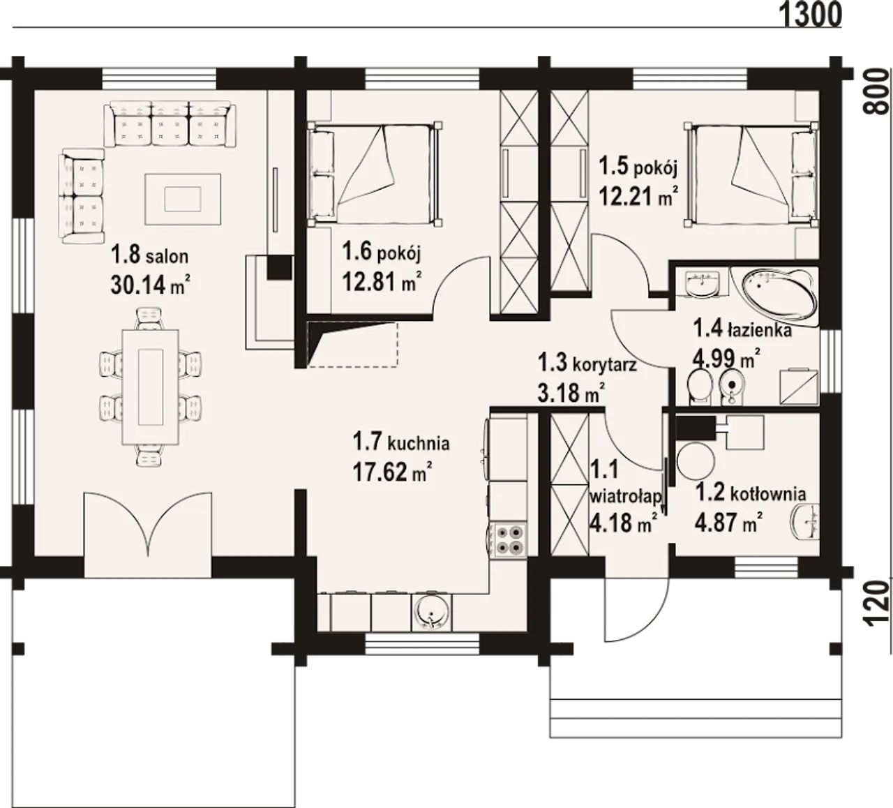 Wypełnij formularz i otrzymaj rysunki w pdf z dokładnymi wymiarami budynku i pomieszczeń (długość, szerokość, wysokość) dla projektu Bolesławice 7 dw