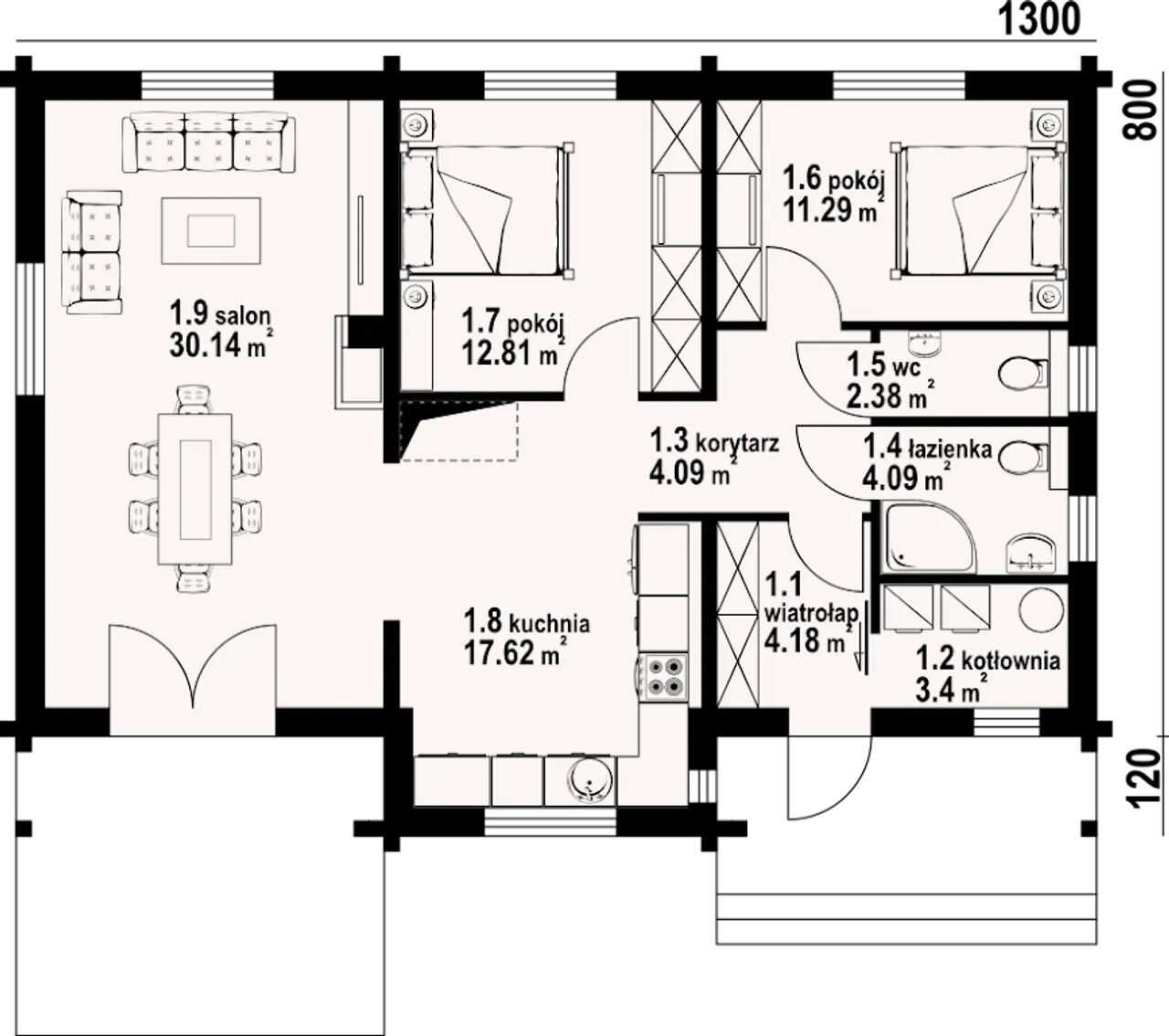 Wypełnij formularz i otrzymaj rysunki w pdf z dokładnymi wymiarami budynku i pomieszczeń (długość, szerokość, wysokość) dla projektu Bolesławice dw 17