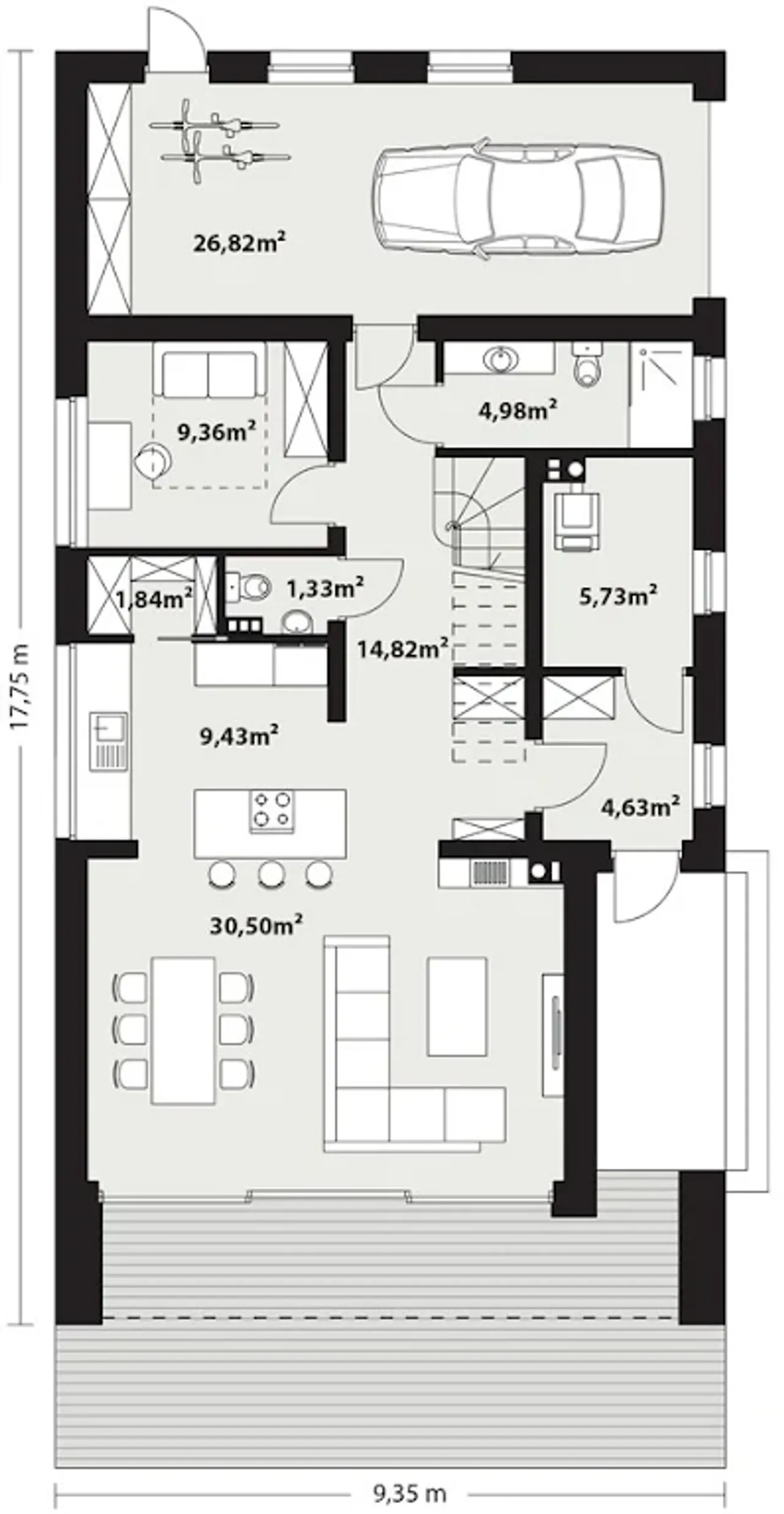 Wypełnij formularz i otrzymaj rysunki w pdf z dokładnymi wymiarami budynku i pomieszczeń (długość, szerokość, wysokość) dla projektu Bono 4 A