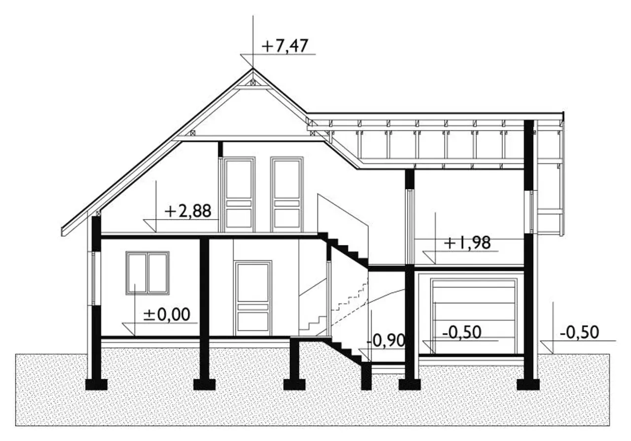 - przekroje - pokazują wszystkie elementy budynku po przecięciu go wzdłuż lub w poprzek od dachu do fundamentów tj. warstwy podłogi, stropów i dachu