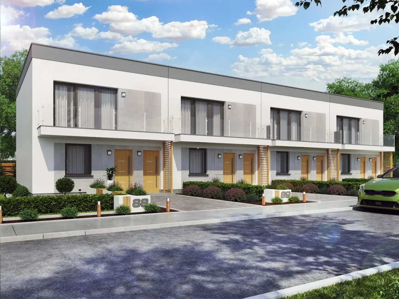 - Forma architektoniczna: Budynek o zwartej bryle, dwukondygnacyjny w zabudowie szeregowej. Budynek przekryty jest dachem płaskim. Maksymalna wysokość budynku wynosi 6,84m. Nowoprojektowany budynek swoją formą nawiązywać winien do zabudowy występującej w sąsiedztwie planowanej inwestycji.