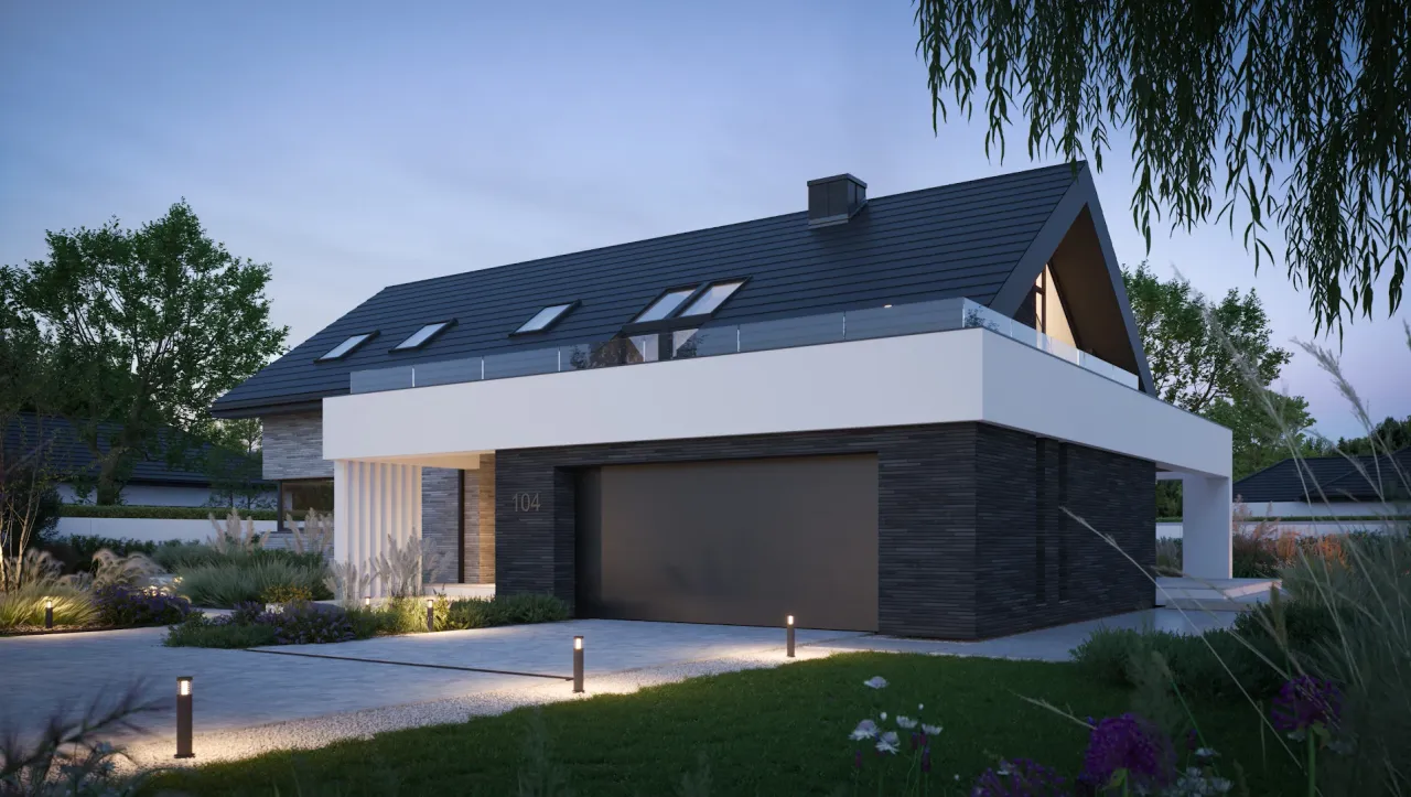 Wypełnij formularz i otrzymaj rysunki w pdf z dokładnymi wymiarami budynku i pomieszczeń (długość, szerokość, wysokość) dla projektu BrickHouse 104
