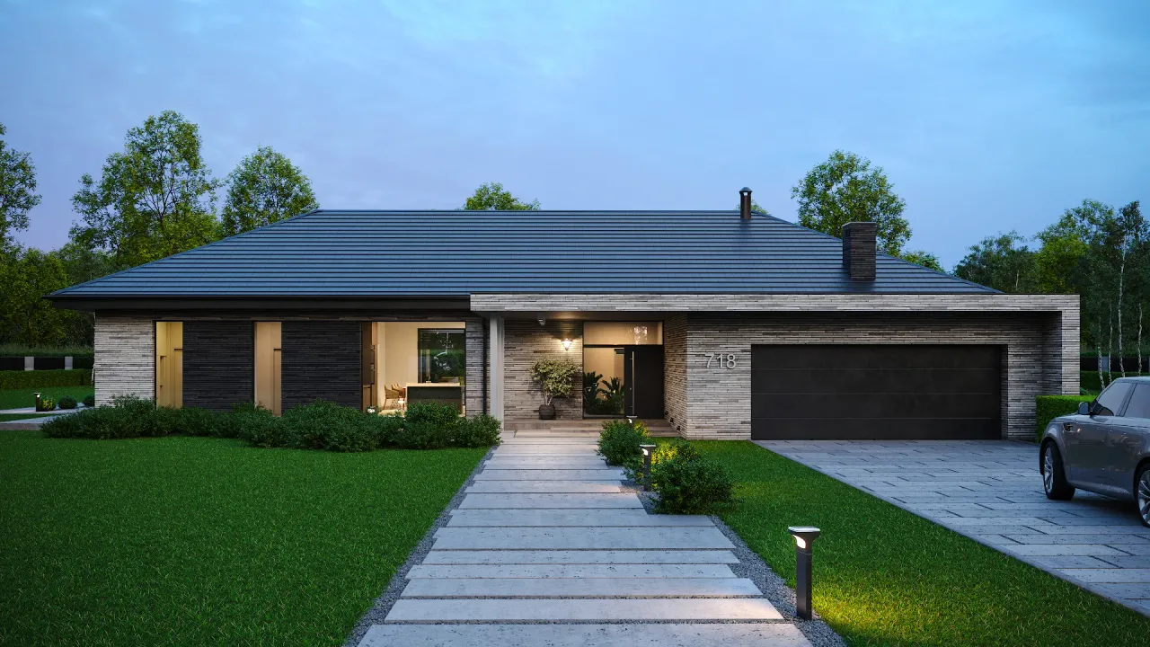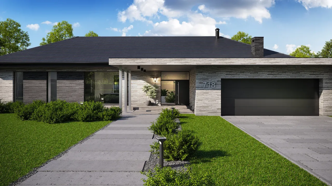 - Elewacje: płytka klinkierowa połączona z tynkiem silkonowym.