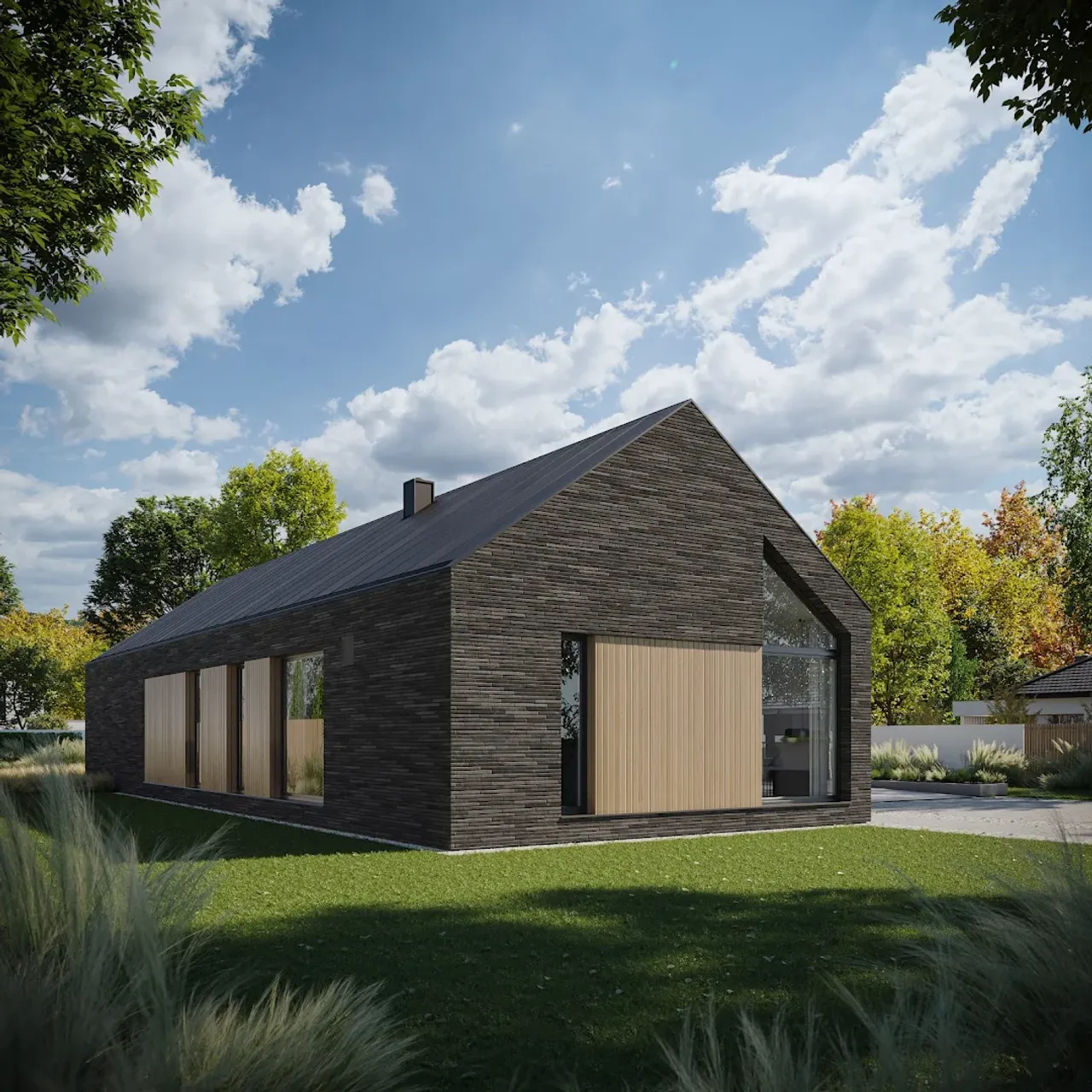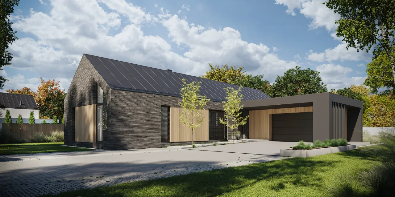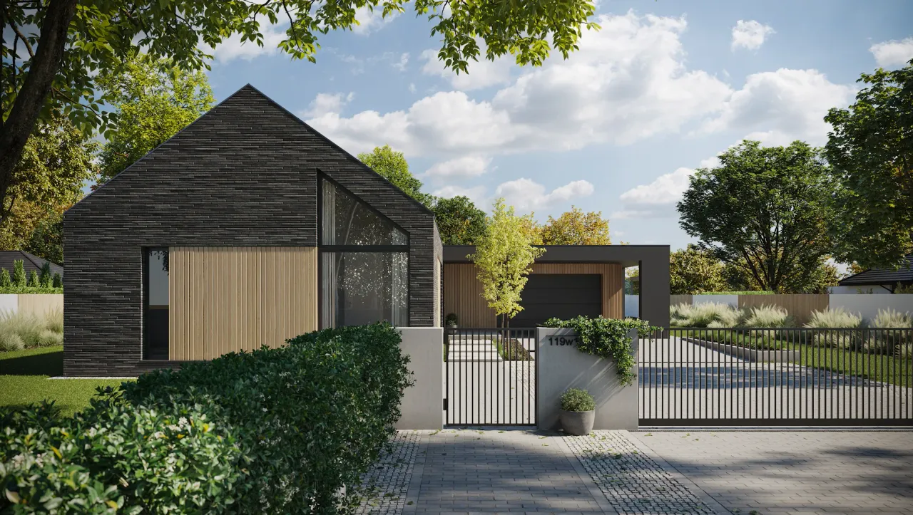 Projekt domu BrickHouse 119 w1 to prawdziwy klejnot wśród nowoczesnych projektów domów. Jego minimalistyczna bryła w połączeniu z industrialnymi elementami tworzy harmonijną całość, która zachwyci każdego miłośnika współczesnego designu. Idealny dla rodziny szukającej nie tylko funkcjonalności, ale także unikalnego stylu. Duże przeszklenia zapewniają doskonałe doświetlenie wnętrz oraz bliski kontakt z otoczeniem, co jest szczególnie cenne w kontekście coraz popularniejszej idei życia w zgodzie z naturą. Projekt BrickHouse 119 w1 to doskonały wybór dla tych, którzy cenią sobie przestrzeń, nowoczesność i wygodę, jednocześnie nie rezygnując z funkcjonalnych rozwiązań, które ułatwiają codzienne życie i czynią je bardziej komfortowym.