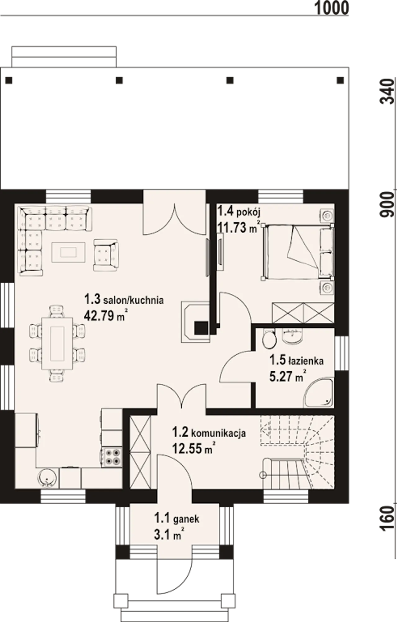 Wypełnij formularz i otrzymaj rysunki w pdf z dokładnymi wymiarami budynku i pomieszczeń (długość, szerokość, wysokość) dla projektu Brzezina nowa 3