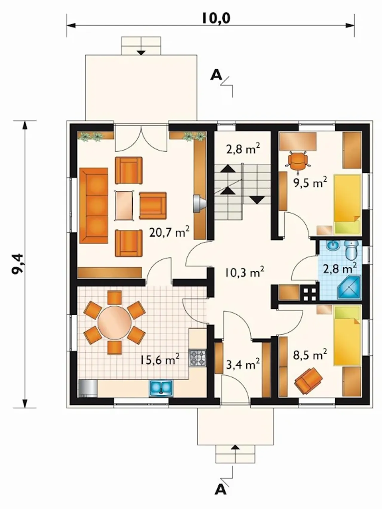 - elewacje - pokazują dokładny wygląd domu od frontu, z tyłu i z boków