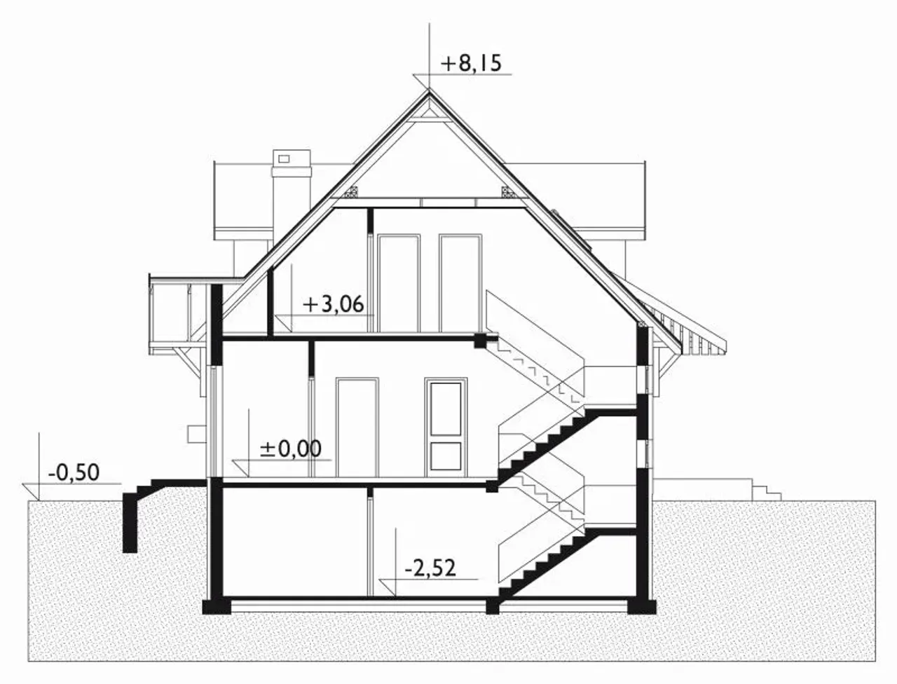 - przekroje - pokazują wszystkie elementy budynku po przecięciu go wzdłuż lub w poprzek od dachu do fundamentów tj. warstwy podłogi, stropów i dachu