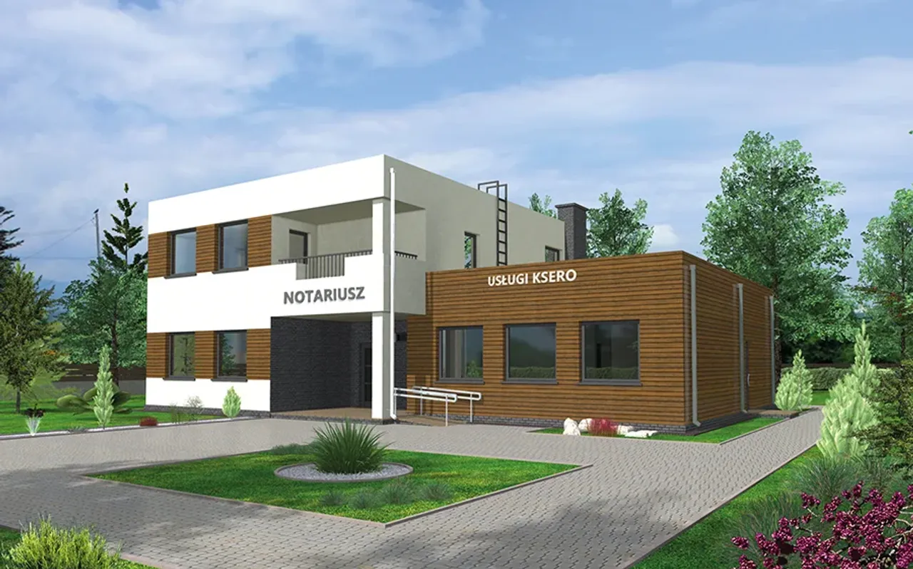 Wypełnij formularz i otrzymaj rysunki w pdf z dokładnymi wymiarami budynku i pomieszczeń (długość, szerokość, wysokość) dla projektu Budynek mieszkalno-usługowy - UC66