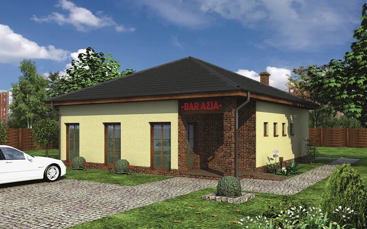Wypełnij formularz i otrzymaj rysunki w pdf z dokładnymi wymiarami budynku i pomieszczeń (długość, szerokość, wysokość) dla projektu Budynek usługowy - UC17