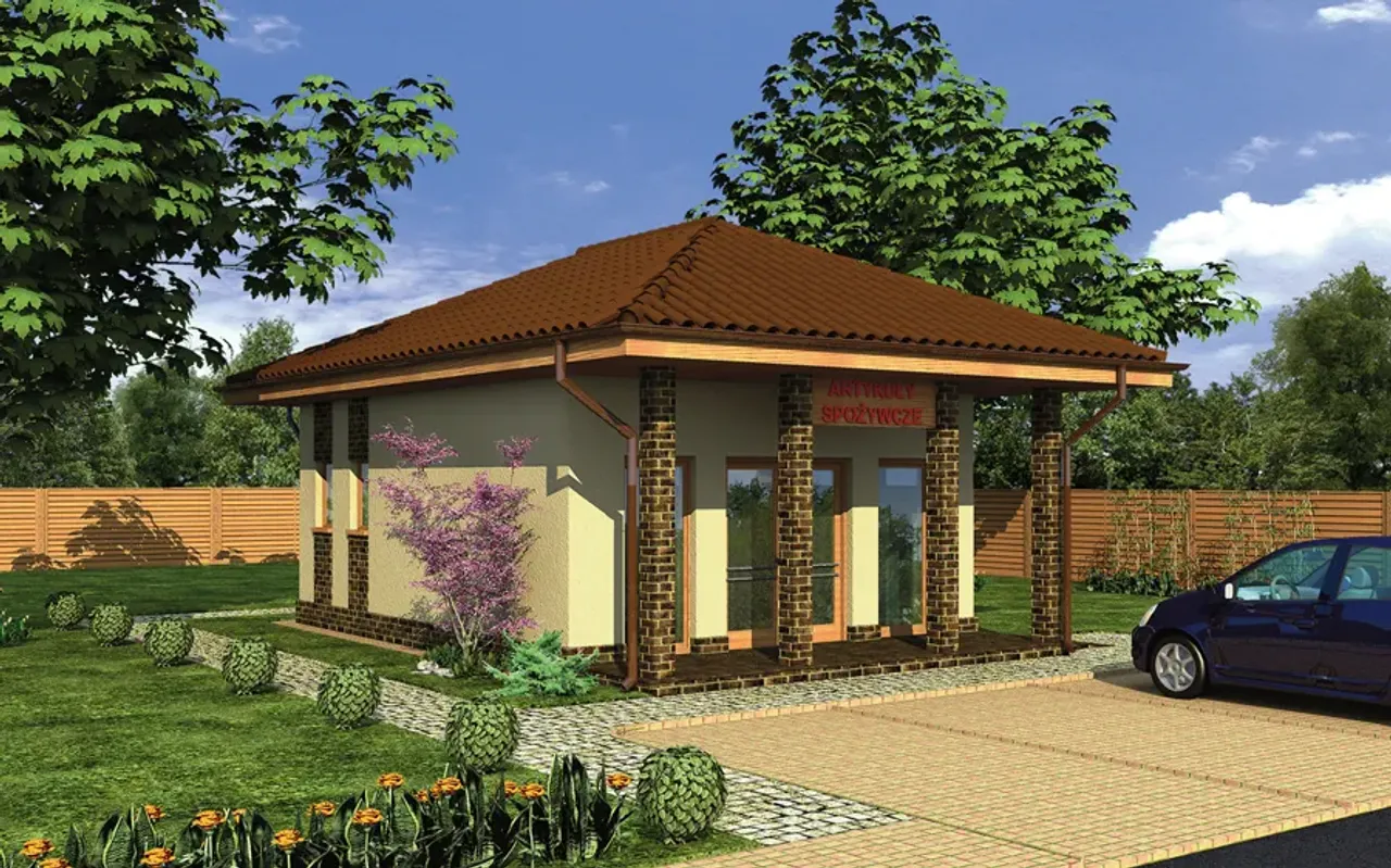 parterowy                                        Wypełnij formularz i otrzymaj rysunki w pdf z dokładnymi wymiarami budynku i pomieszczeń (długość, szerokość, wysokość) dla projektu Budynek usługowy - UC49