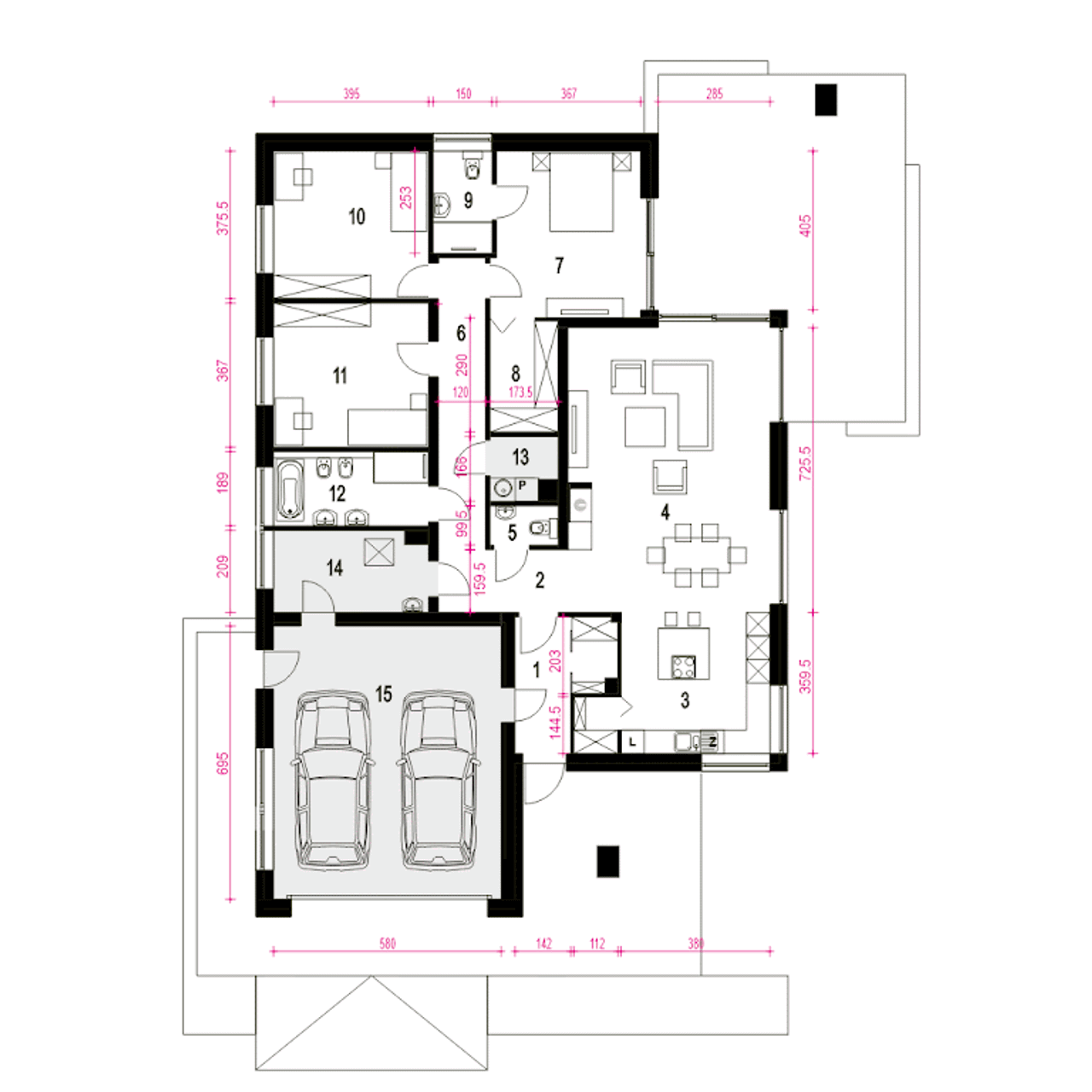 Wypełnij formularz i otrzymaj rysunki w pdf z dokładnymi wymiarami budynku i pomieszczeń (długość, szerokość, wysokość) dla projektu Bursztyn III z garażem 2-st. A1