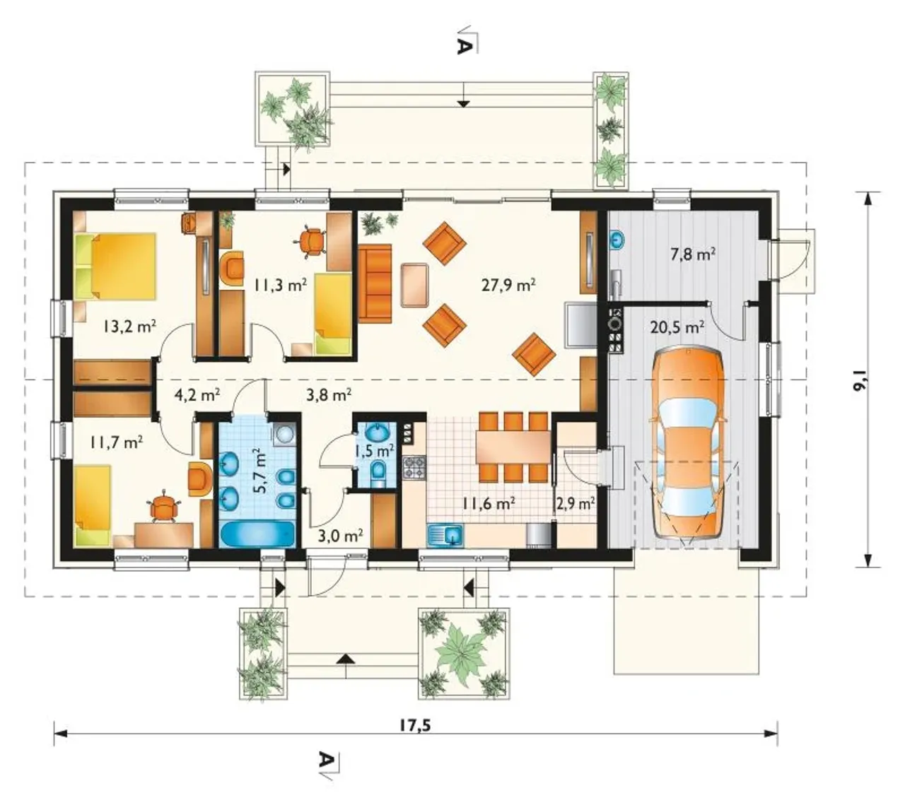 Szerokość budynku 17.5 m |