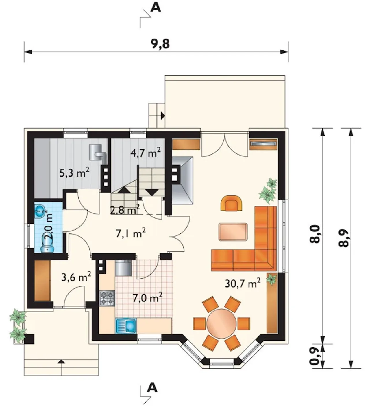 - elewacje - pokazują dokładny wygląd domu od frontu, z tyłu i z boków