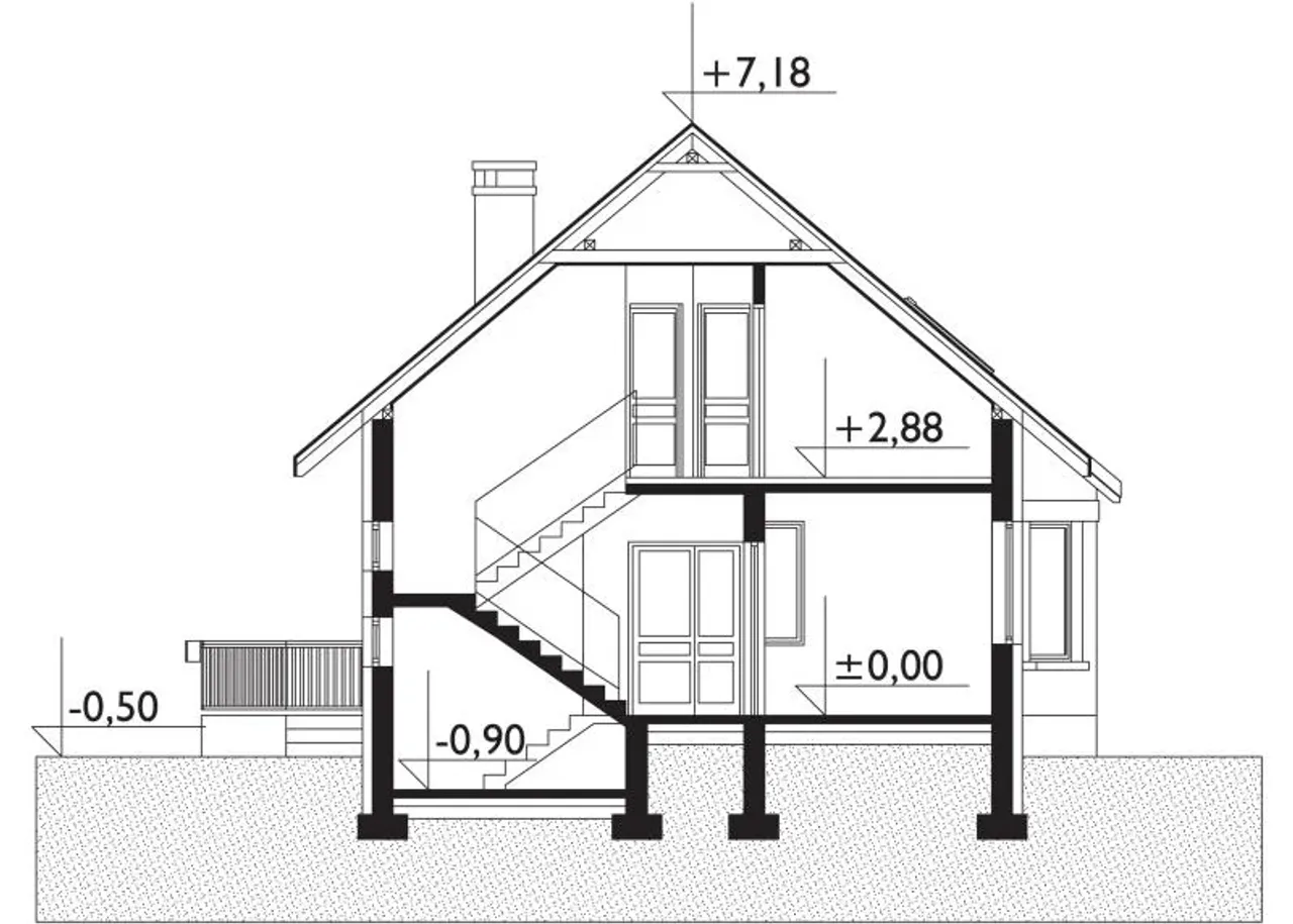 - przekroje - pokazują wszystkie elementy budynku po przecięciu go wzdłuż lub w poprzek od dachu do fundamentów tj. warstwy podłogi, stropów i dachu