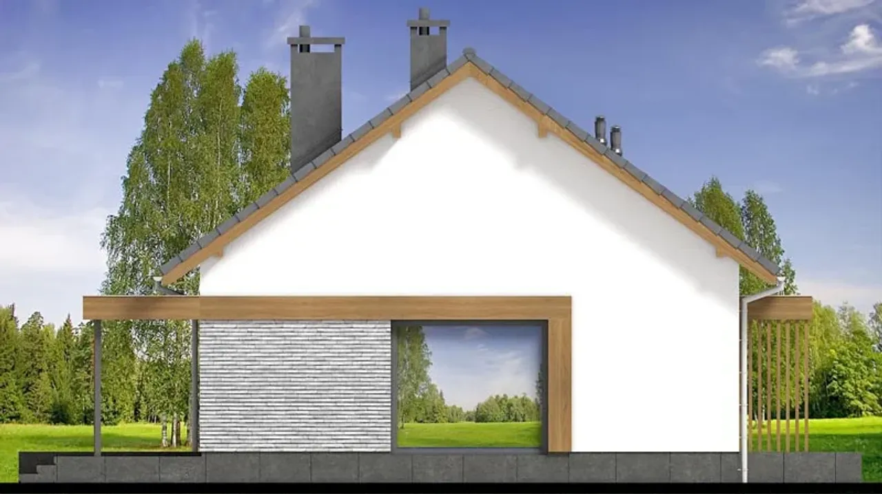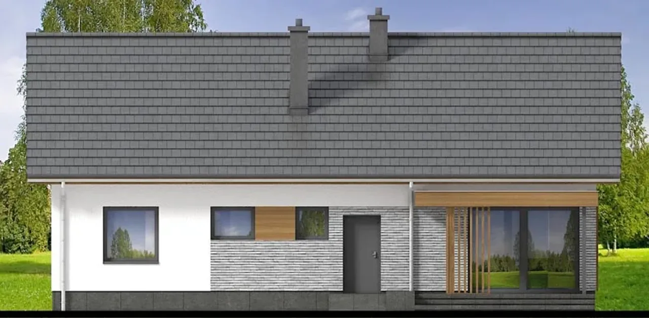 Wnętrze urzeka czytelnym podziałem na strefę wspólną i prywatną, oferując wygodę wszystkim domownikom. Projekt kominka w salonie nadaje wnętrzu wyjątkowej atmosfery i sprzyja relaksowi w gronie bliskich. Brak garażu oraz podpiwniczenia pozwala dodatkowo zagospodarować otoczenie budynku, na przykład pod przestronny ogród lub nowoczesny taras ogrodowy.