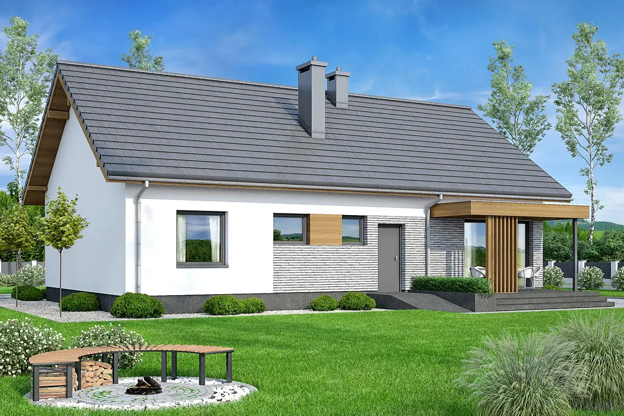 Odkryj projekt nowoczesnego domu parterowego Calma - idealne rozwiązanie dla rodzin poszukujących funkcjonalności i stylowego designu. Przemyślany układ 4 jasnych pokoi oraz praktyczne rozwiązania konstrukcyjne sprawią, że codzienne życie stanie się przyjemnością.