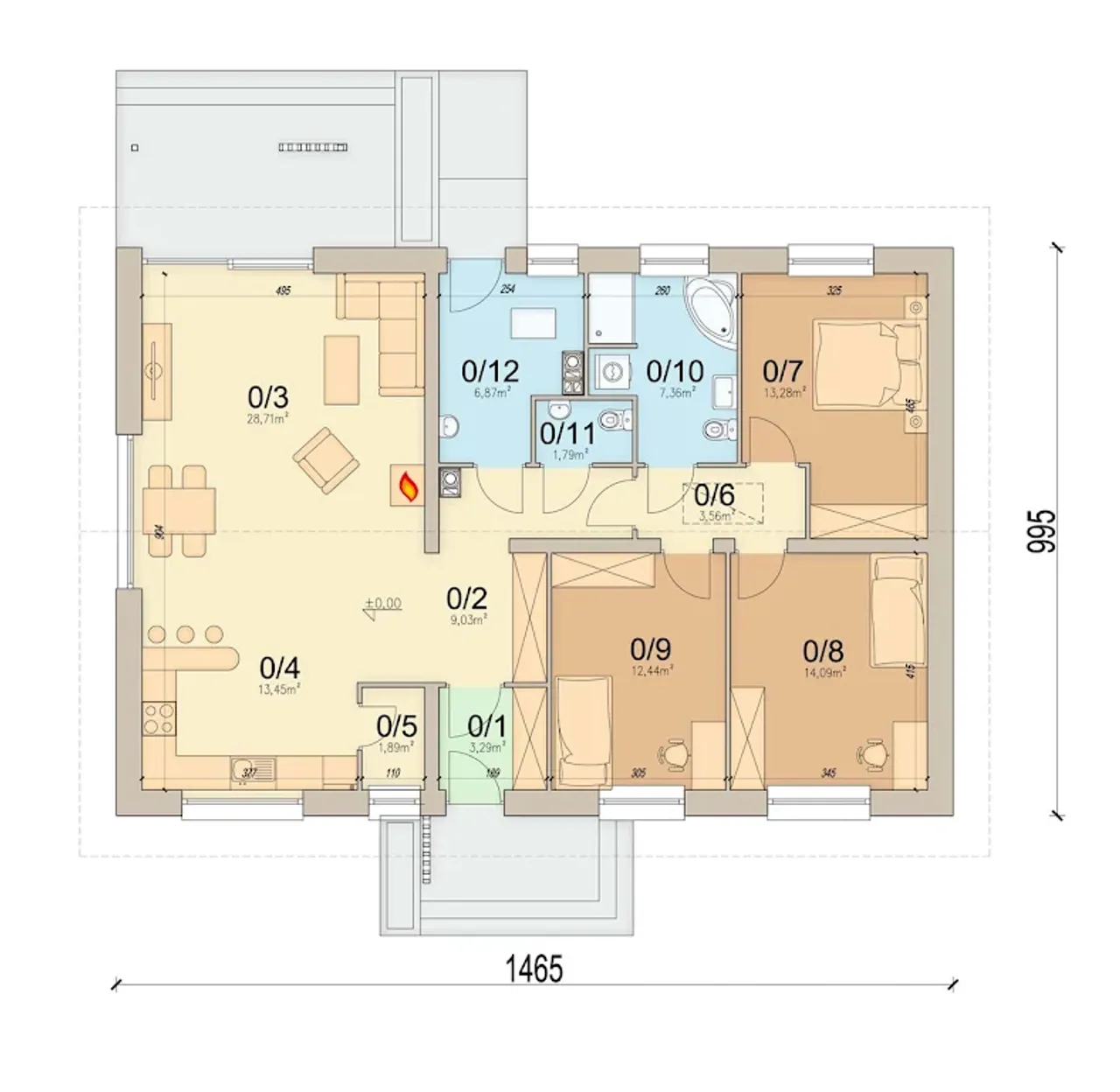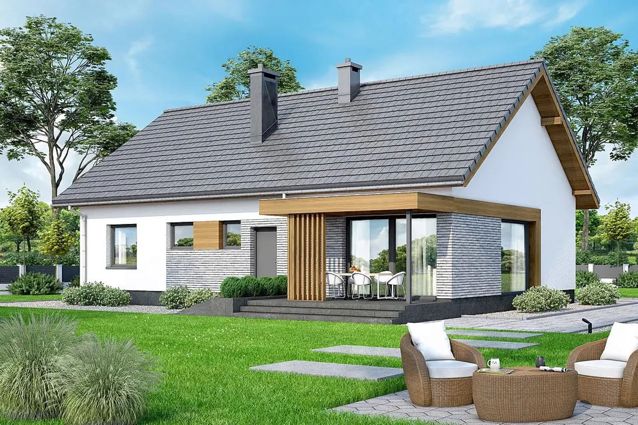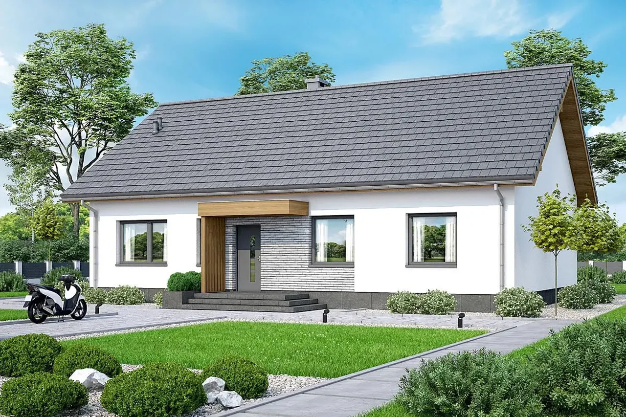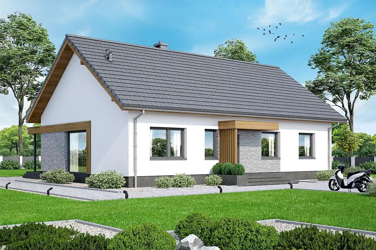 Calma Plus to projekt domu jednorodzinnego całorocznego, zaprojektowany specjalnie dla rodzin, które poszukują wygodnego i praktycznego miejsca do życia. Parterowy układ z czterema pokojami umożliwia elastyczne dopasowanie przestrzeni do własnych potrzeb - znajdzie się miejsce zarówno na przytulną sypialnię, jak i domowe biuro czy pokój dla dzieci. Brak schodów i podpiwniczenia sprawia, że dom jest bezpieczny oraz niezwykle przyjazny dla wszystkich mieszkańców, w każdym wieku.