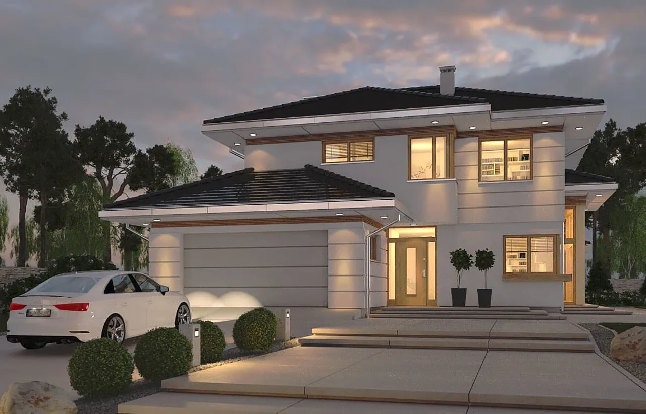 Interesująca propozycja, design tego domu prezentuje unikalną i nowoczesną estetykę. Początkowo przykuwa uwagę, z pewnością godny rozważenia.