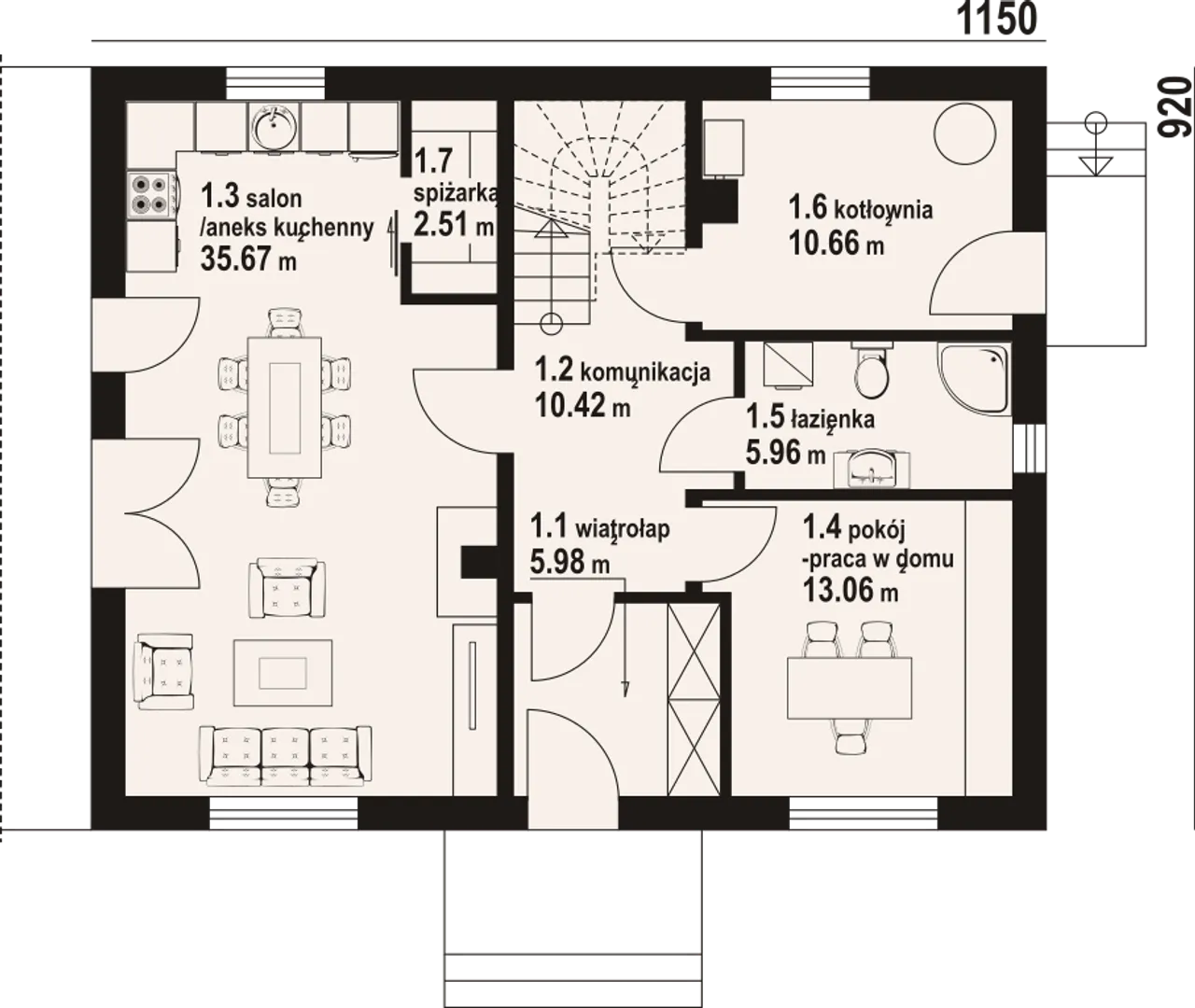 - opisu architektonicznego zawierającego m.in. opis przyjętych rozwiązań, zestawienia powierzchni (użytkowej, zabudowy, netto), kubatury oraz powierzchni poszczególnych pomieszczeń