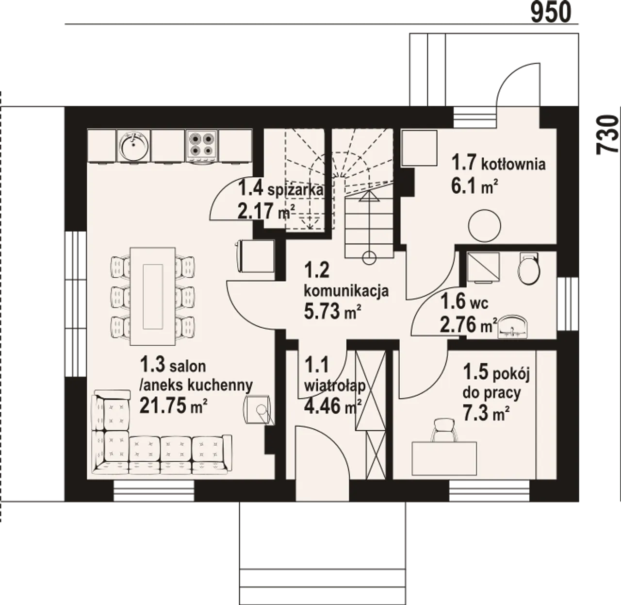 - opisu architektonicznego zawierającego m.in. opis przyjętych rozwiązań, zestawienia powierzchni (użytkowej, zabudowy, netto), kubatury oraz powierzchni poszczególnych pomieszczeń