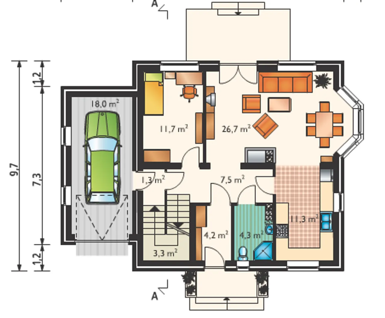 - elewacje - pokazują dokładny wygląd domu od frontu, z tyłu i z boków