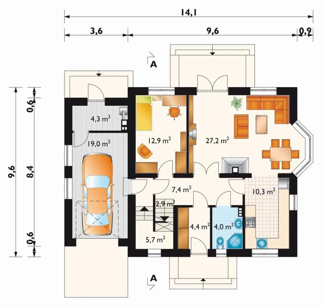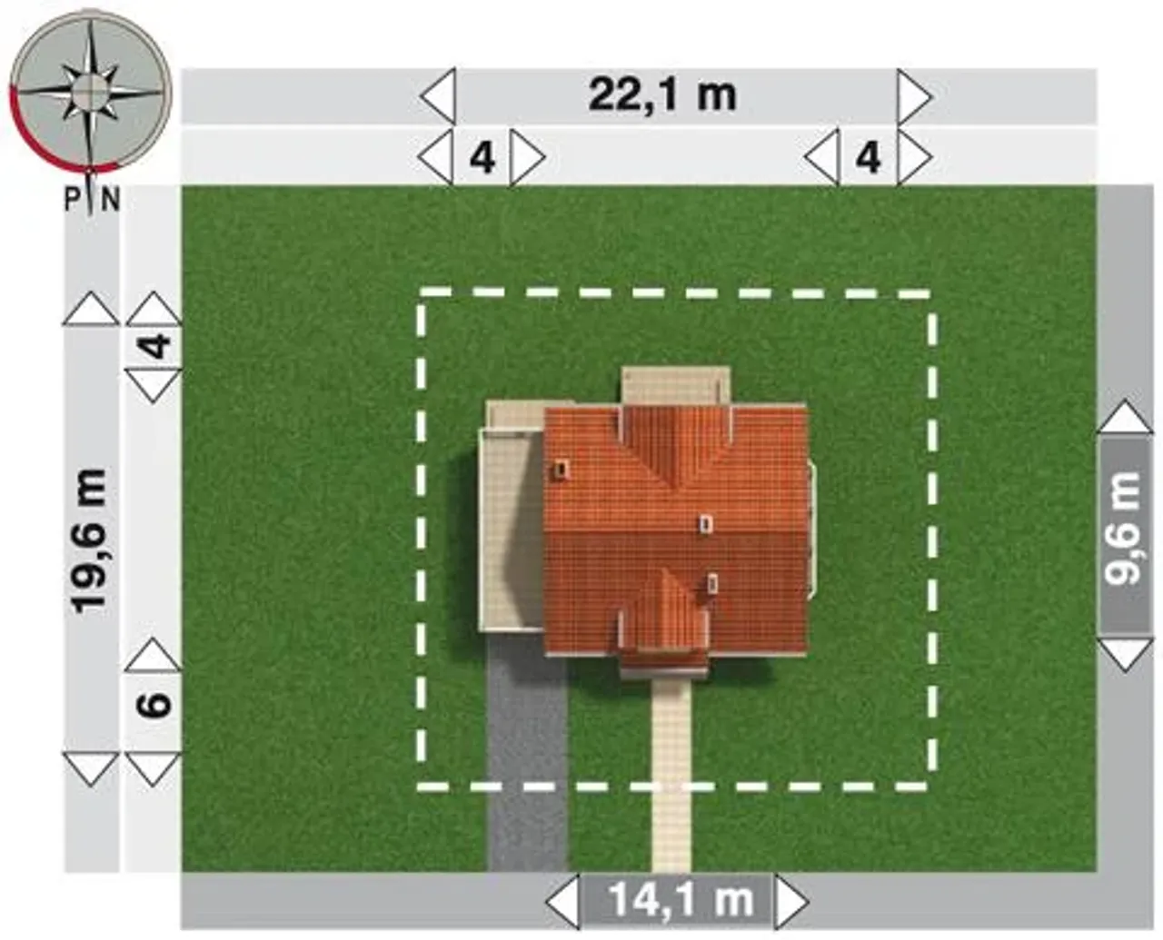 Szerokość budynku 9.6 m |