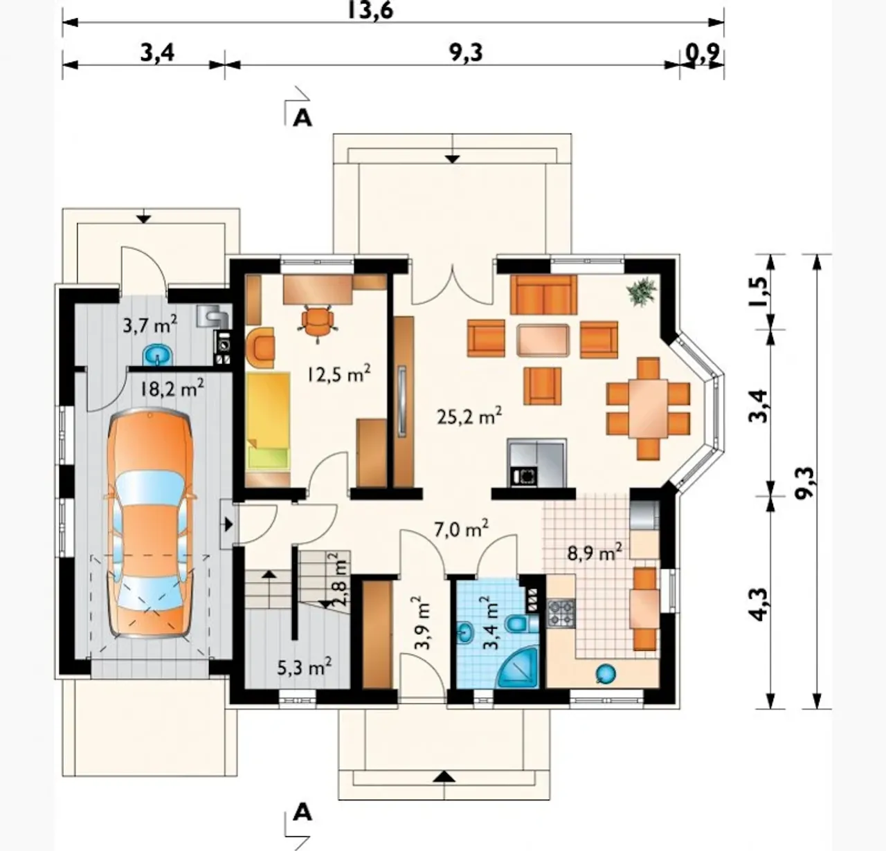 - elewacje - pokazują dokładny wygląd domu od frontu, z tyłu i z boków