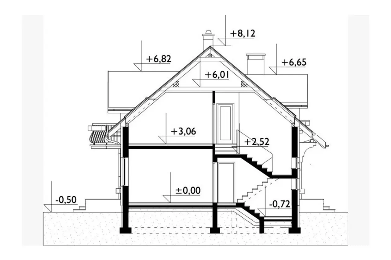 - przekroje - pokazują wszystkie elementy budynku po przecięciu go wzdłuż lub w poprzek od dachu do fundamentów tj. warstwy podłogi, stropów i dachu