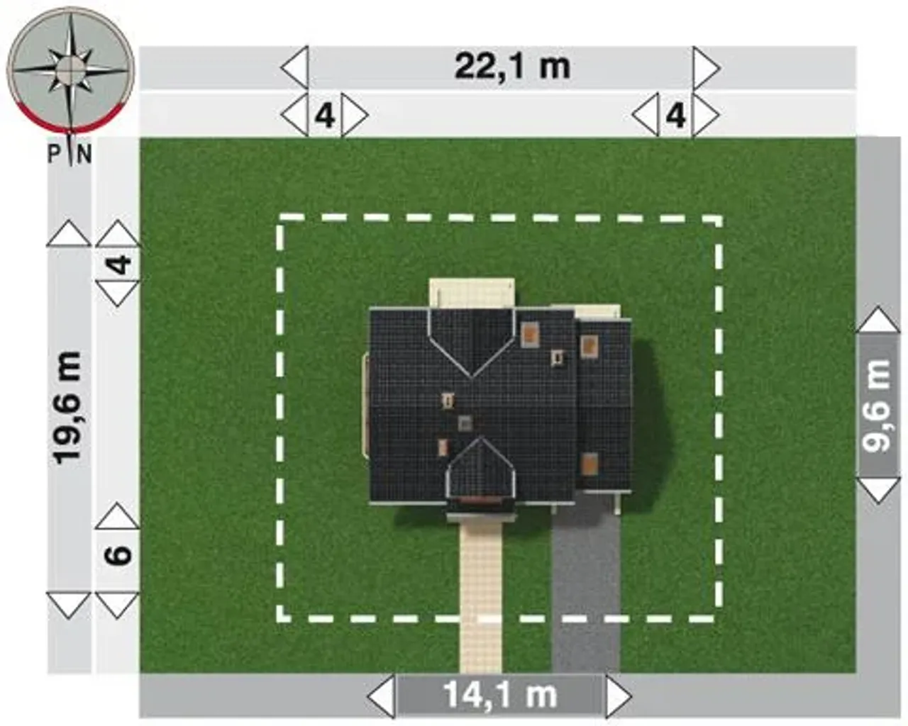 Szerokość budynku 9.6 m |