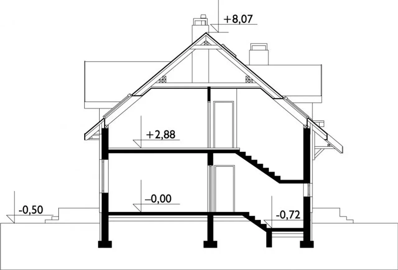 - przekroje - pokazują wszystkie elementy budynku po przecięciu go wzdłuż lub w poprzek od dachu do fundamentów tj. warstwy podłogi, stropów i dachu