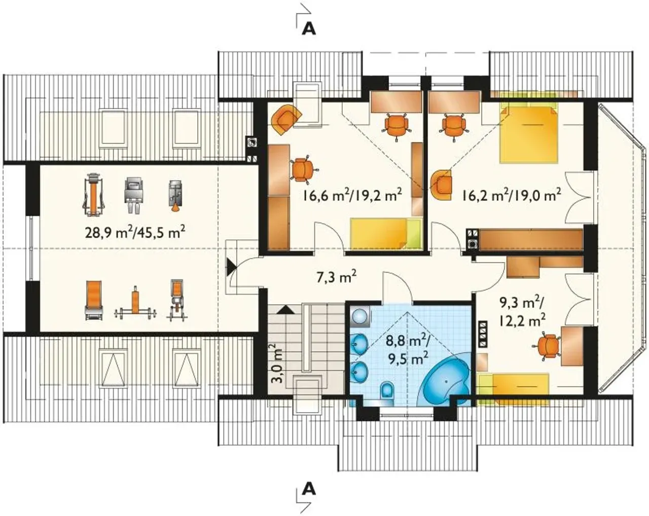 - rzuty wszystkich kondygnacji- pokazuje rozmieszczenie poszczególnych pomieszczeń i ich wymiary, powierzchnie, rozmieszczenie ścian, rozmieszczenie otworów drzwiowych, okiennych, urządzeń kuchennych i sanitarnych