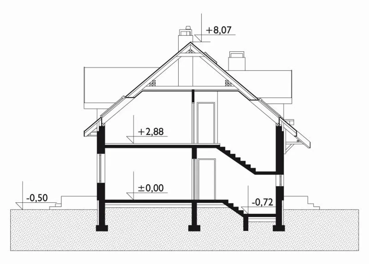 - przekroje - pokazują wszystkie elementy budynku po przecięciu go wzdłuż lub w poprzek od dachu do fundamentów tj. warstwy podłogi, stropów i dachu