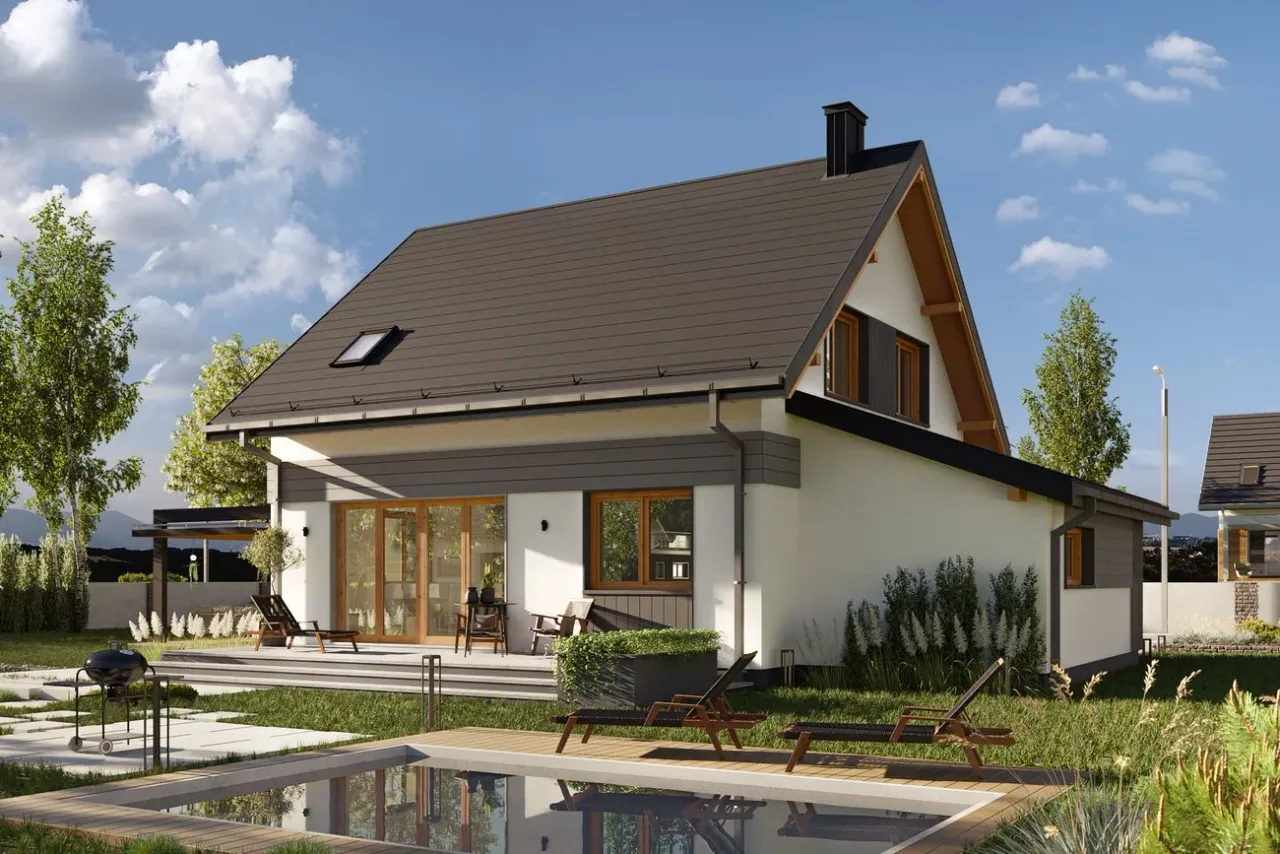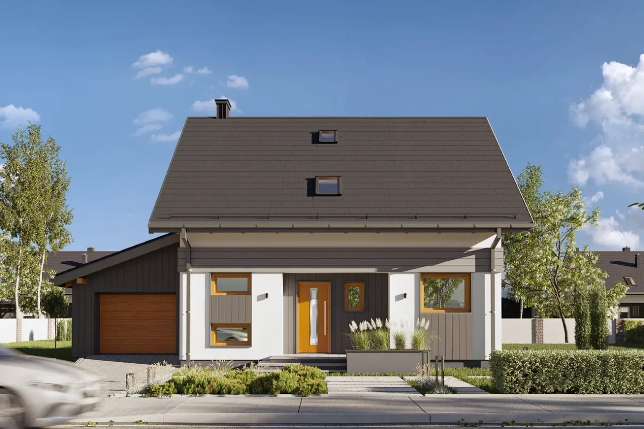 - elewacje - pokazują dokładny wygląd domu od frontu, z tyłu i z boków