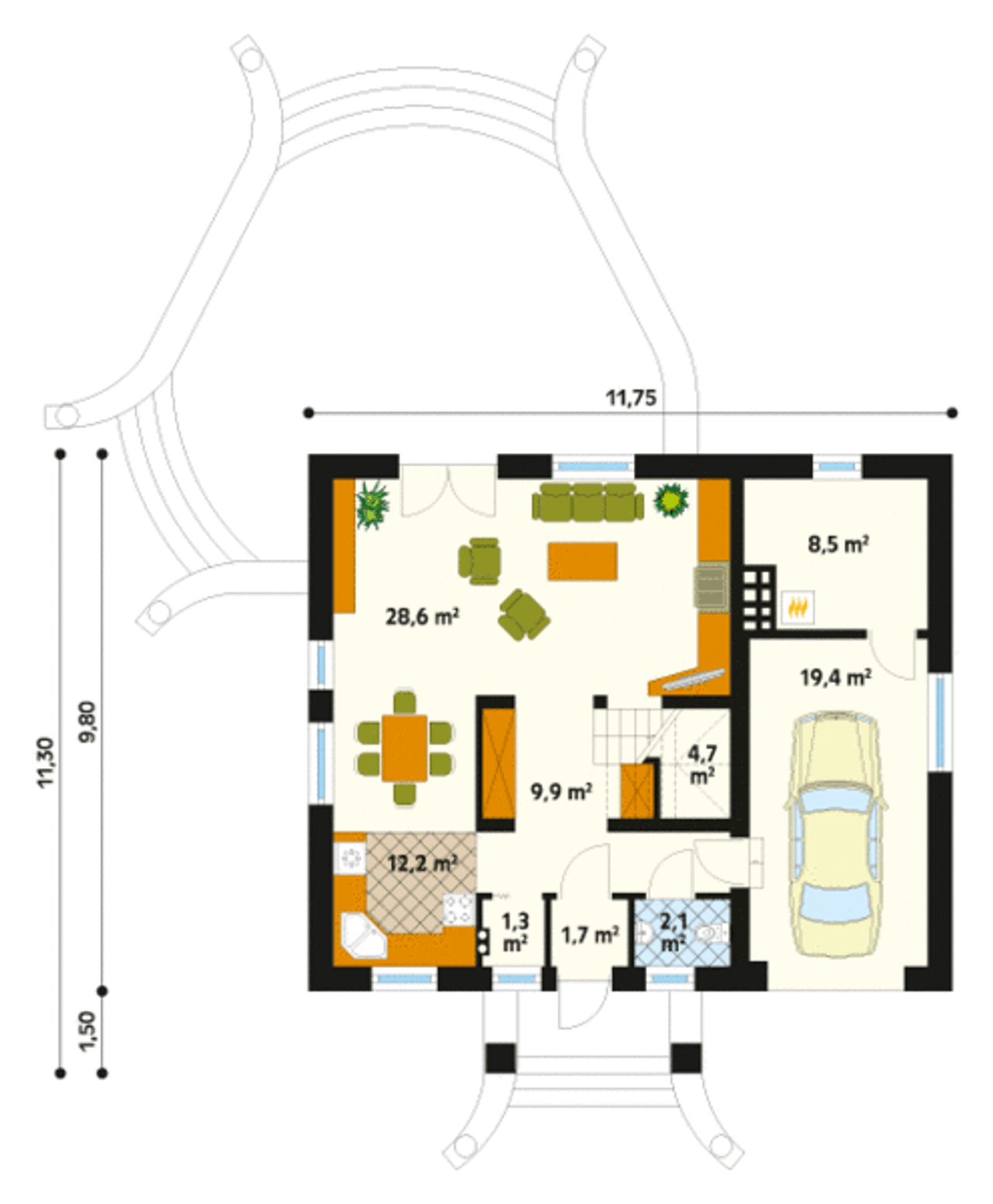 Wypełnij formularz i otrzymaj rysunki w pdf z dokładnymi wymiarami budynku i pomieszczeń (długość, szerokość, wysokość) dla projektu Chaber 2