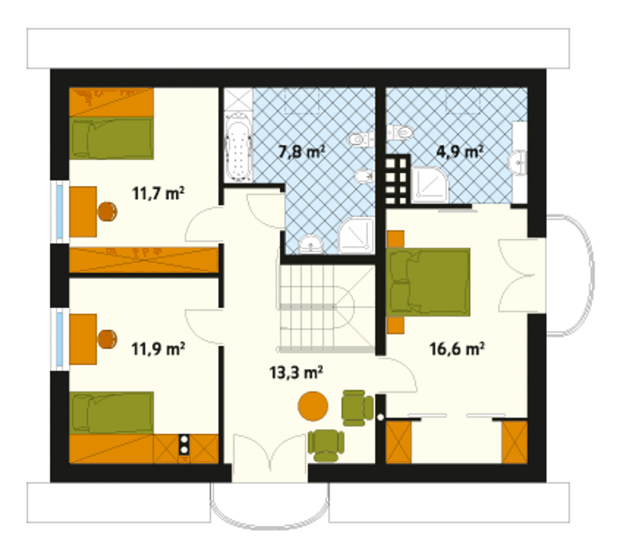 Wypełnij formularz i otrzymaj rysunki w pdf z dokładnymi wymiarami budynku i pomieszczeń (długość, szerokość, wysokość) dla projektu Chaber 3