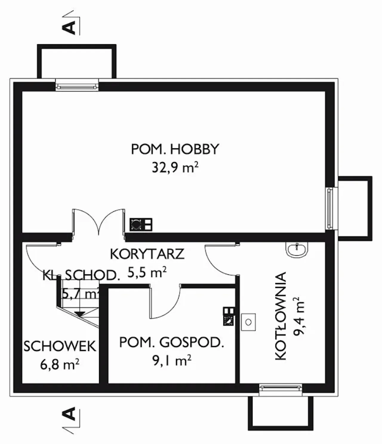 - rzuty wszystkich kondygnacji- pokazuje rozmieszczenie poszczególnych pomieszczeń i ich wymiary, powierzchnie, rozmieszczenie ścian, rozmieszczenie otworów drzwiowych, okiennych, urządzeń kuchennych i sanitarnych