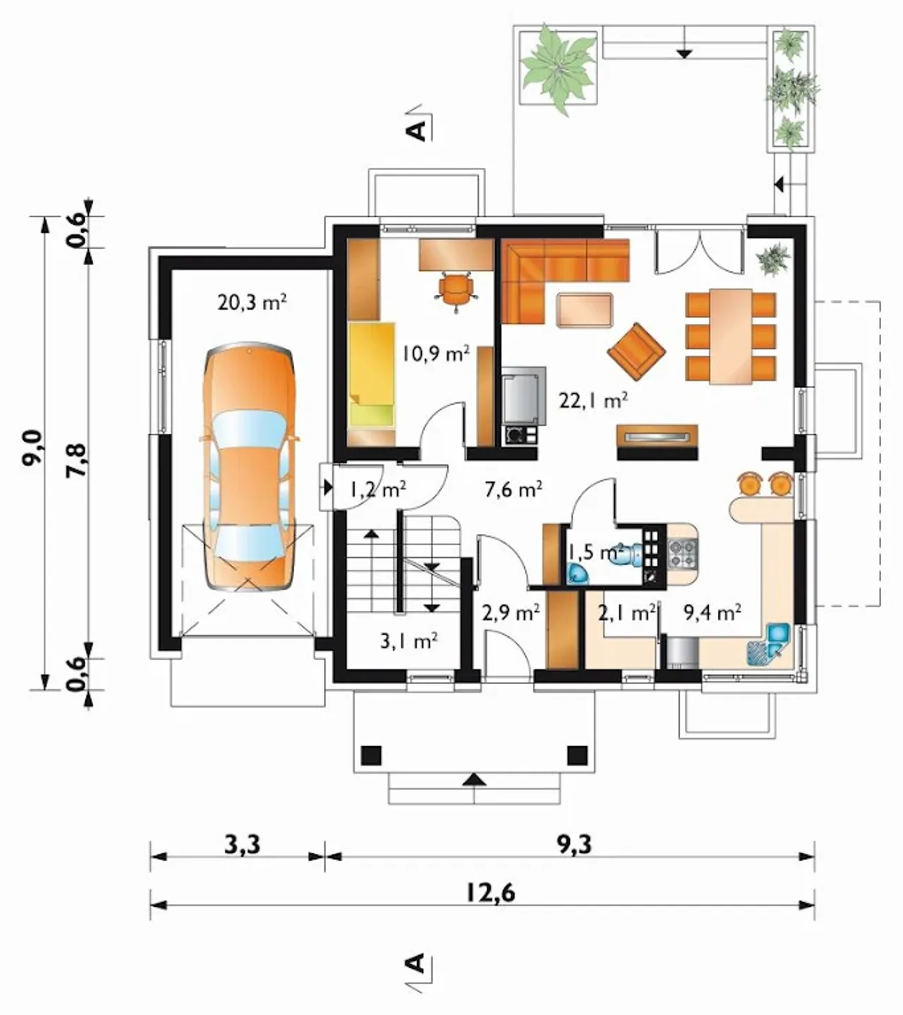 5. Pomieszczenie gospodarcze | 9,10 m² |
