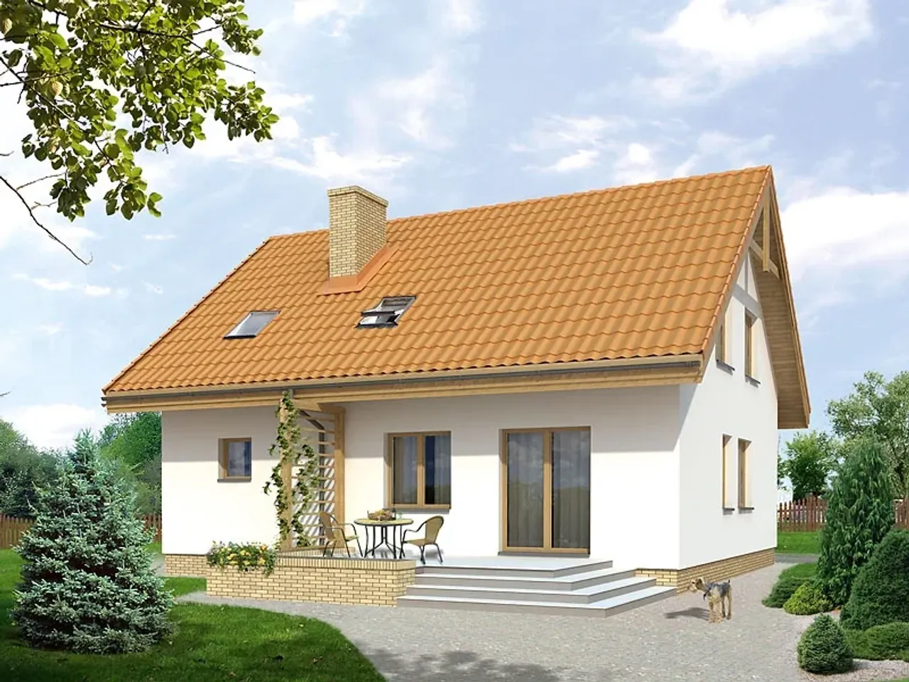 Gotowy projekt domu o nazwie Chaber (CE) to budynek całoroczny , zaprojektowany w technologii murowanej - tradycyjnej. Elewacja budynku wykończona jest w stylu tradycyjnym, natomiast dom pokryty jest dachem dwuspadowym. Projekt domu Chaber (CE) zmieści się na działkę o szerokości 19.75, jego powierzchnia użytkowa 129.3 obejmuje parter oraz poddasze budynku. W projekcie Chaber (CE) w garażu zmieści się jedno auto (prosimy o sprawdzenie w innych wersjach projektu Chaber (CE)).Jest to dom energooszczędny.z kominkiem,bez piwnicy.