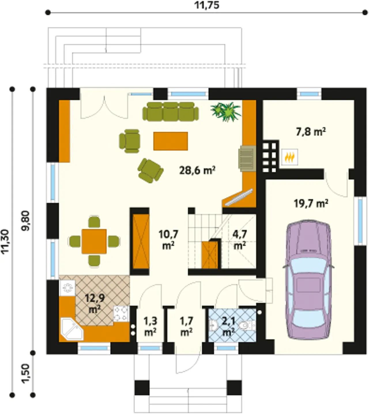 Szerokość budynku 11.75 m |